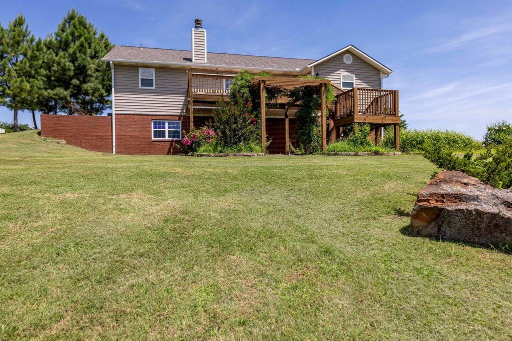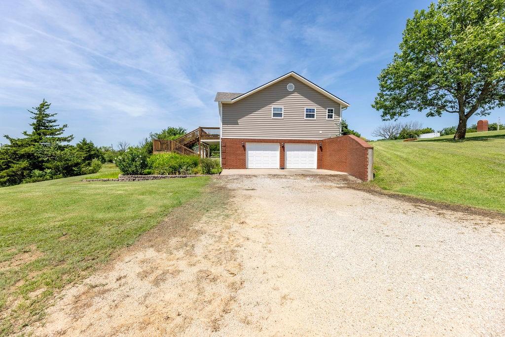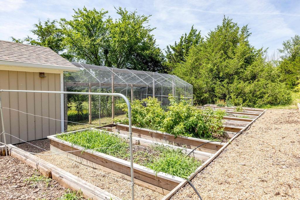 Perched on 3.9 acres, this Hillside Ranch offers 4-bedrooms, 3-bathrooms, 2-Car Garage, and a total of 2,364 sqft of thoughtfully designed living space. The expansive deck and covered patio provide priceless panoramic views over the city of Caney, making every sunrise and sunset a delight. The home’s main floor showcases ¾ rough-hewn oak floors, an open floor plan, wood burning/gas starter fireplace, primary bedroom with private bath, 2 additional bedrooms, 2nd full bathroom and French doors that lead you out onto the spacious deck. The full walkout basement features a second living area with 2nd fireplace, garage access, 4th bedroom and 3rd full bathroom — ideal for guests! The primary suite includes a whirlpool tub, a walk-in shower, and polished travertine tile. The HVAC is only 4 years old, the 60-gallon water heater is 3 years old, and the new roof was completed in the summer of 2024. Enjoy modern conveniences like a whole-house sediment RO water filtration system, a water booster pump, and garage door openers with a lifetime warranty. Outdoor enthusiasts and homesteaders will appreciate the stocked pond, an enclosed chicken coop and pen, 15 raised garden beds equipped with an irrigation system for growing fruits, vegetables, herbs, and even a vineyard assortment of grapes. Multiple fruit trees enhance this lush, landscaped property, which blooms beautifully in the spring with perennial flower beds. Additional features include a gardening/storage shed, a weather station, a south-side security camera with infrared, and energy-efficient LED lighting throughout the home. The photos of this home do not do it justice, experience the view, comfort and cozy hillside charm for yourself, call for a showing today! This Caney Heights Gem won't last for long,