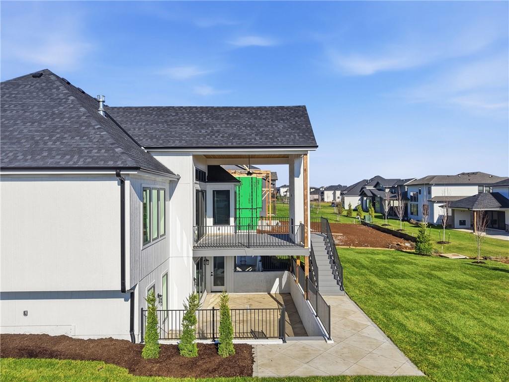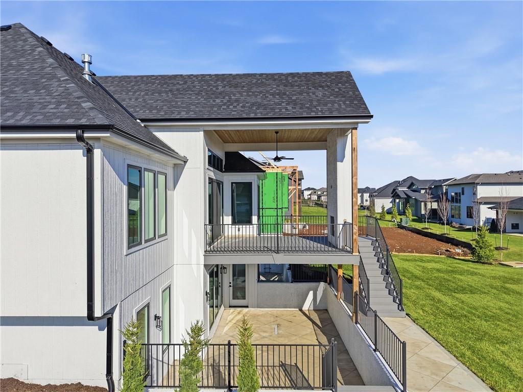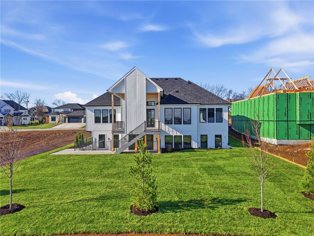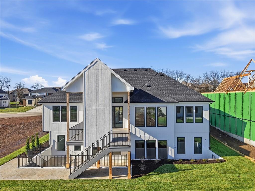 READY!! You'll love this sought after Gunnison REVERSE by JFE HOMES with a X-Large sunken patio on Lot #182 in a private cul-de-sac. This ideal floor plan is a popular one with spacious main floor living at just over 2000 square feet on the main floor and a full finished walkout lower level for a total of 3596 finished square feet of living space. BONUS WASHER AND DRYER already installed by the BUILDER! SO many extra features in this home like the pocket office, elegant glass doors in the kitchen, large prep pantry, free standing tub, pull down bars in primary closet. This beautiful home is an award winning plan and loaded with upgraded features at this price. The BRAND NEW modern look includes extra windows, vertical wood accent posts with real stone trim. Built on a walkout/up lot with an AMAZING OUTDOOR sunken patio. MUST SEE! This home also features a covered deck with fireplace, double sliders that open from the great room providing plenty of light, a large great room with high ceilings and an oversized kitchen with island prep style walk in pantry. The perfect walkout lower level is finished and has a spacious living room with wet bar, TV accent wall, and two additional bedrooms and a fitness room. Still plenty of room for basement storage. Century Farms has a spectacular club house with a farmhouse twist ideal for neighborhood gatherings or private parties. It features a small prep area, fireplace, pub tables, reading loft and a fitness center. Large resort style swimming pool. There are plenty of neighborhood activities with a fire-pit, two pickle-ball courts and a basketball hoop, farm themed animal kids play area, wildflower walkways and a community garden. Century Farms is conveniently located near the brand new Bluhawk shopping center, Heritage Park, the Johnson County Trail system and the Overland Park Arboretum. Come join the fun in Century Farms, a unique one of a kind upscale new home community in Overland Park. BLUE VALLEY SCHOOLS