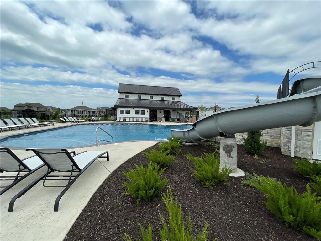 MOVE IN READY! The modern Riviera REVERSE by SAB Homes located on lot 184 in a cul-de-sac with a full finished walkout basement. You will love this new modern twist to a classic reverse floorplan at just over 3000 square-foot. with spectacular curb appeal featuring high peaks, vertical accent siding, metal accent roof, blackened bronzed windows, and super dark charcoal paint with red brick trim. Stunning! This home also features an ideal plan floor plan with a main floor primary suite and an office/ second bedroom with access to the covered 16' x 12' deck from the dining room and bedroom. Enjoy the finished walkout lower level with two more bedrooms, large family room with LVT flooring, parallel wet bar and a door to the backyard, plus plenty of room for storage. Perfect outdoor space under a 16' x 12' covered patio with full sod front and back, sprinkler system and front landscaping package included. This home is loaded with upgrades; gas cooktop, quartz countertops, decorative bath mirrors, Maxx Lounge freestanding tub, bump out in the dining area for hutch or china cabinet, boot bench at garage entry, large windows, floor to ceiling tile fireplace with accent ceiling trim in great room, vertical shiplap accent wall in the office with 3 ceiling beams, wainscoting at entry and stairwell and light wood flooring. Century Farms has a spectacular club house with a farmhouse twist ideal for neighborhood gatherings or private parties with reading loft and a fitness center. There are plenty of neighborhood activities with a fire-pit, two pickle-ball courts and a basketball hoop, kids play area, wildflower walkways and a community garden. Century Farms is conveniently located near the brand new Bluhawk shopping center, Heritage Park, the Johnson County Trail system and the Overland Park Arboretum. Come join the fun in Century Farms, a unique one of a kind upscale new home community in Overland Park. BLUE VALLEY SCHOOLS