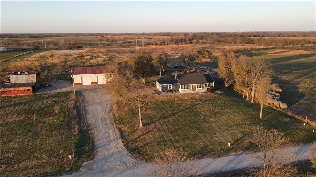 Country home featuring 3 bedrooms and 2 bathrooms on 11.82 +/- Acres. With 1,208 square feet of finished living space, the house is efficiently built with all the needed comforts. The front entry is met by the living room which flows into the dining room and kitchen with an open floor plan. The master bedroom is spacious with an open style bathroom, with a large jetted tub and tiled shower. The home has a full basement that is currently unfinished, giving an opportunity to double the living area of the house. Many will agree that a major draw to this property is the 40 X 60 shop that has concrete floors, electrical service, is fully insulated, and has HVAC. Tons of space for storage and entertaining! Located about 4 miles east of I-49, this home is only a 10 minute drive to Archie Schools, 20 minutes to Harrisonville or Butler, and 40 minutes to areas like Lee’s Summit or Martin City.