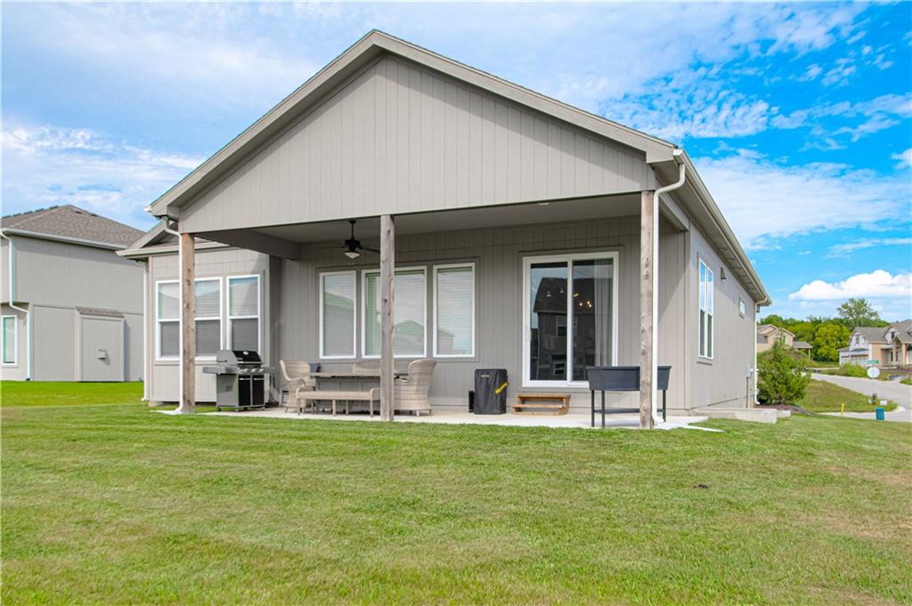 Harvest Special! A deal to be truly thankful for —Sellers are offering $3000 concessions at closing for any acceptable offer by November 27, 2025! Reverse Ranch on FLAT, CORNER LOT with EASY access and EASY parking! Beautiful landscaping and inviting front porch welcomes you as you pull up to this like new home. The custom entry displays a gorgeous, tray ceiling with wood paneling that greets you and flows into a spacious wide open floorplan. The generous and open living area is specially designed for family gatherings and entertainment in mind. The main level living space features designer trim, accented with oversized custom windows offering tons of natural lighting, a beautiful fireplace and custom cabinetry. Generous kitchen cabinets and granite counters plus an oversized island and HUGE walk-in pantry! Main floor master suite features a tray ceiling, custom windows and spa bath with zero entry shower and double vanity with quartz counters and storage. The main floor laundry is located off the master walk-in closet for ultimate convenience! The 2nd Bedroom on Main Level ideal for office or guest room. Enlarged covered patio for outdoor living accessed from Dining area. Lower level family room featuring 9' ceilings is perfect for media/game room and is stubbed for future wet bar. In addition, the finished basement includes two more bedrooms, a full bath and tons of storage space! Oversized 3rd car garage means room for the "toys". Kearney address but LIBERTY SCHOOLS. This home has been lived in <2 year ands it is better than new. You will not want to let this beauty slip away. It's a stunning and quality built home!