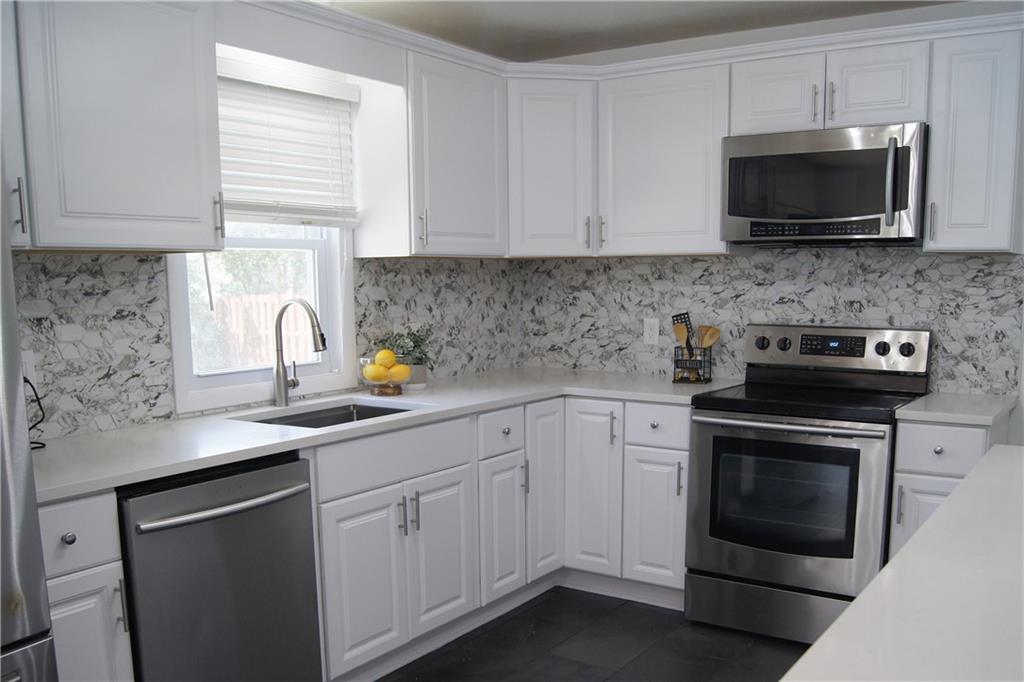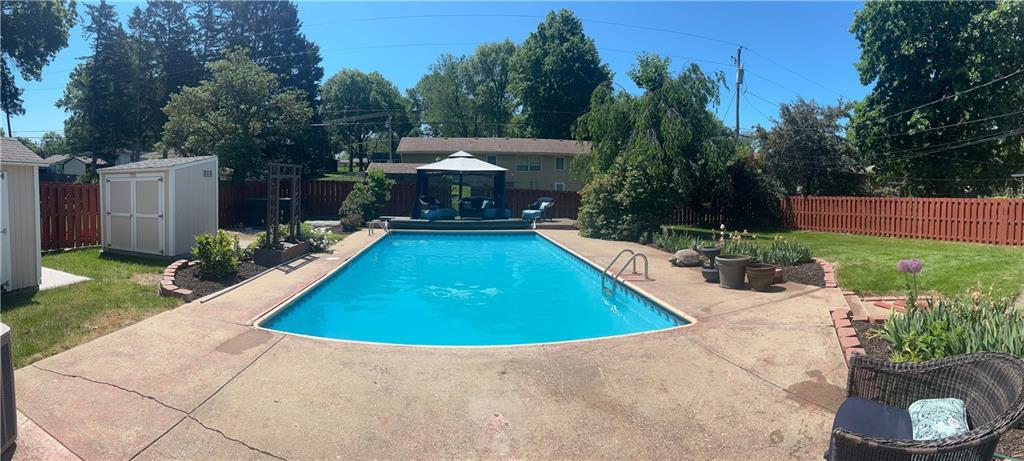 This home has been loved! Open concept ranch home with all the custom bells and whistles! Walk into this completely remodeled ranch stepping into the open concept living room with white washed fireplace. Then it opens up to the eat in dining room/kitchen with quartz countertops, custom cabinets, stainless steel appliances and newly tiled floor. Walk out back from the kitchen to your outside oasis! The back yard will become your staycation getaway. Inground pool 16 by 32, 11 ft deep, and stained concrete surrounds the pool. Tranquil flowerbeds with established plants throughout the front and backyards. 2 colored/stamped concrete pads that have 2 sheds for ample storage. Large deck with covered gazebo and trex composite boards. What was once a 5 bedroom home has been turned into a 3 bedroom 2.5 bath with a 4th non-conforming office/bedroom. The primary bedroom is enormous boasting over 10 by 28 feet of room and a walk in closet. Half bathroom off of the primary is completely remodeled with custom fixtures and unique penny tile floor. Main full bathroom has new deep inset tub, new tile surround, granite vanity with penny tile floor. The lower level has all the amenities one could want. Utility room with washer/dryer hook up with newer tile flooring. Original built in bar made modern with tile frontage, penny backsplash and resurfaced tops. Extra large family room with fireplace and custom stained glass window. Bedroom with egress window is another room with limitless possibilities with an area over 18 by 15 feet! There is a non conforming office/bedroom as well and another full bathroom that has been completely redone. New roof, gutters, exterior paint done in fall of 2024. Zoisa sod was ordered and established summer of 2024. You must take a look at this home that has been truly loved for over the past 20 years because pictures do not do it justice! Schedule a showing today before it's gone. Agent owned.