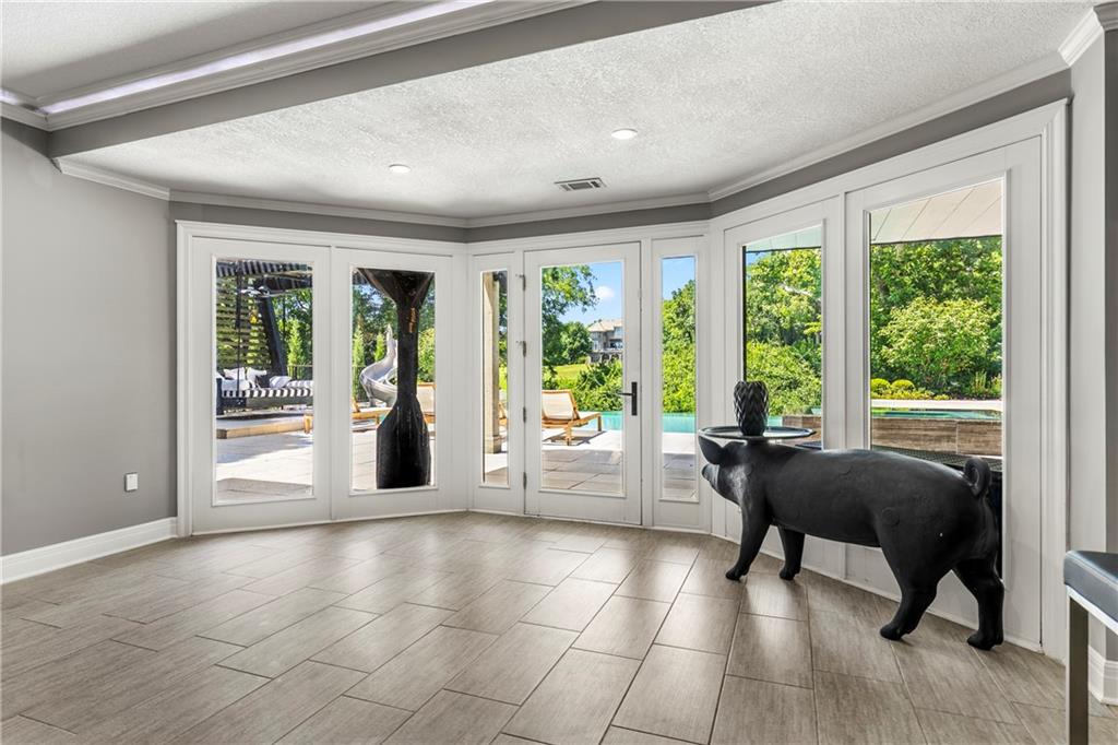 Welcome to your dream home in the highly sought-after Hallbrook Farms! This stunning English Stone Estate home has expansive views of the 4th fairway of the Hallbrook Golf Course! Three levels of wow with updates throughout! Surprises at every turn - 5 fireplaces charming all main living areas, including the primary suite! Central to this home is an updated gourmet kitchen, perfect for culinary enthusiasts and social gatherings alike, with an adjacent hearth room and sunroom! The lower level is designed with entertainment in mind, featuring every amenity imaginable. Vacation at home in the transformed backyard sanctuary, featuring a newer installed gunite salt pool with an added spa and slide, an ideal setting for both relaxation and endless fun. Words can't describe!, all bedrooms are suites & own baths, walls of windows & French doors to bring the outside in w/deck spanning the whole private back retreat! The home also boasts a newer tile roof, adding to its charm and longevity. Truly breathtaking!