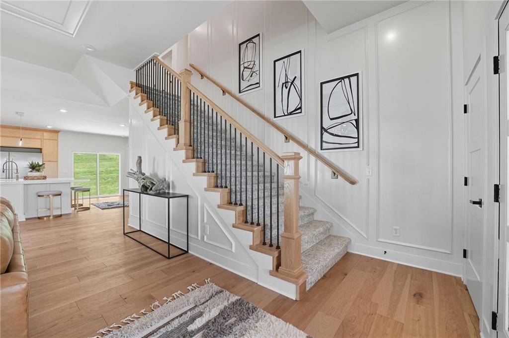 Exceptional New Floor Plan in Parkville's Premier Golf Community! Experience luxury living as you enter through elegant double glass front doors and explore this stunning home featuring designer lighting and warm hickory flooring throughout. The spacious open great room, complete with a wet bar and glass French doors to the home office, creates an ideal blend of privacy and natural light for your home office needs. The gourmet kitchen is a chef's dream, showcasing a full walk-through butler's pantry adorned with windows, open shelving, a prep sink, and ample space for meal preparation. The main kitchen area boasts a full-sized refrigerator and separate freezer, beautifully framed by floor-to-ceiling stained maple cabinetry. Retreat to the lavish master suite, where a serene sitting area leads into a magnificent master bath featuring custom cabinetry, a vanity area, a soaking tub, and a luxurious tiled shower with dual shower heads, all enveloped in elegant floor-to-ceiling tile. The thoughtfully designed master closet accommodates both his and her needs. Convenience is key with a connected laundry room equipped with a folding area and sink, completing the main level. The second floor offers a spacious loft, perfect for gaming and movie nights, while each generously sized bedroom includes walk-in closets and private baths, making it ideal for families and guests alike. Located on a quiet cul-de-sac in a sought-after golf and golf cart community, this home is one of the last new constructions available! Enjoy easy access to the subdivision pool, play area, and exclusive amenities with a social and/or golf club membership to The National. Park Hill South High School, Great location to Parkville, Kansas City Kansas & Downtown Kansas City Missouri, Creekside Shopping Area, and 12 minutes from The Legends featuring shopping, casino, sports and entertainment!