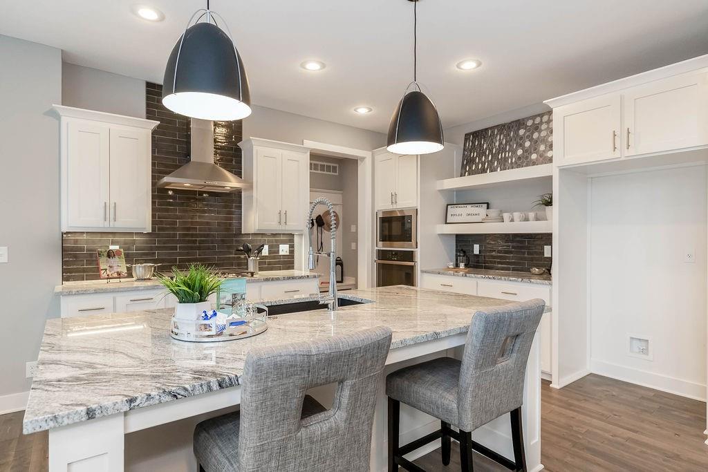 The Brooklyn by New Mark Homes is a 1.5-story walkout residence located in Cadence—a thoughtfully designed, master-planned community by Hunt Midwest. With an estimated completion of January 2026, this 4-bedroom, 3.5-bathroom home offers over 2,800 square feet of elevated living, blending intentional design with everyday functionality. From the moment you arrive, the dimensional front elevation makes a striking impression. Inside, you'll find a spacious, open-concept layout featuring custom-built cabinetry, quartz countertops, a walk-in pantry, and an oversized island—ideal for daily routines and effortless entertaining. The kitchen flows seamlessly into the great room, where a floor-to-ceiling tiled fireplace serves as a stunning focal point. A walkout deck extends your living space outdoors—perfect for relaxed evenings or weekend gatherings. Upgraded trim and designer-selected finishes throughout the home add depth, detail, and polish to every space. The main-level primary suite offers a quiet retreat with a spa-inspired bathroom, freestanding soaker tub, and dual vanities. There's an office on the main floor for added convenience. Upstairs, a loft anchors three additional bedrooms—each with bath access—offering privacy and versatility for family or guests. Cadence residents enjoy access to a range of neighborhood amenities, including a community pool, winding walking trails, and nearby Platte Purchase Park. Located in the award-winning North Kansas City School District and within Staley High School boundaries, this home delivers an ideal combination of style, location, and livability. Taxes & square footage are approximate.