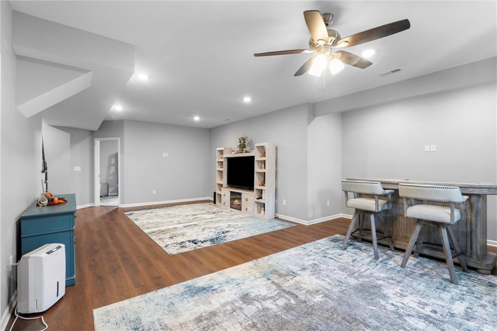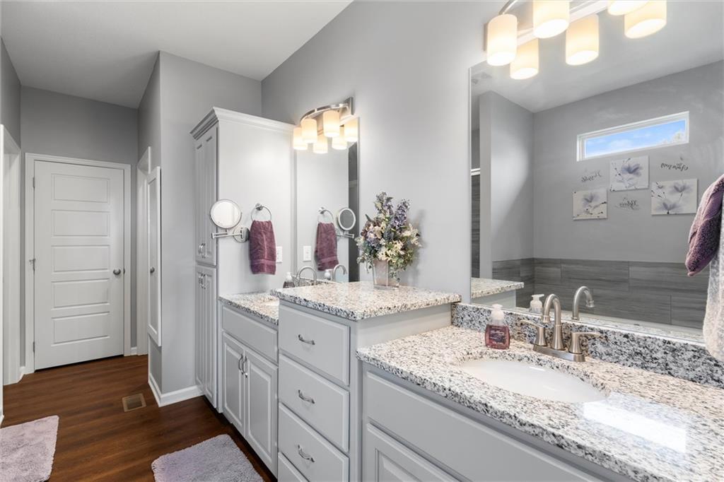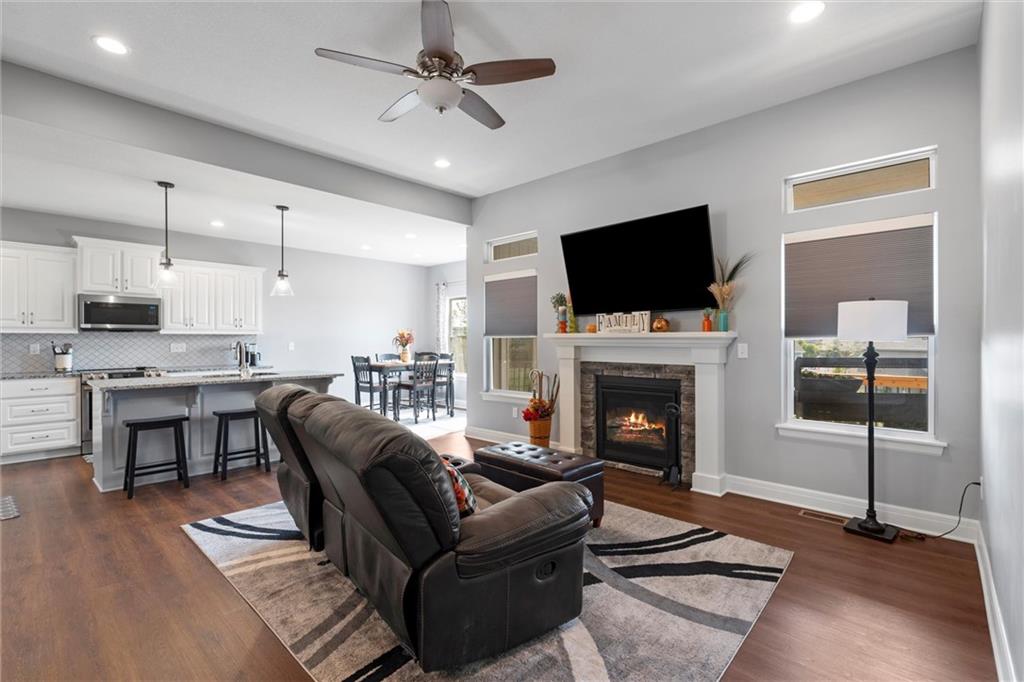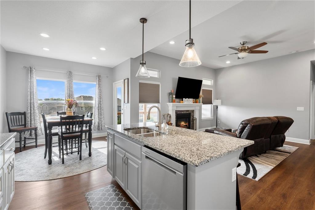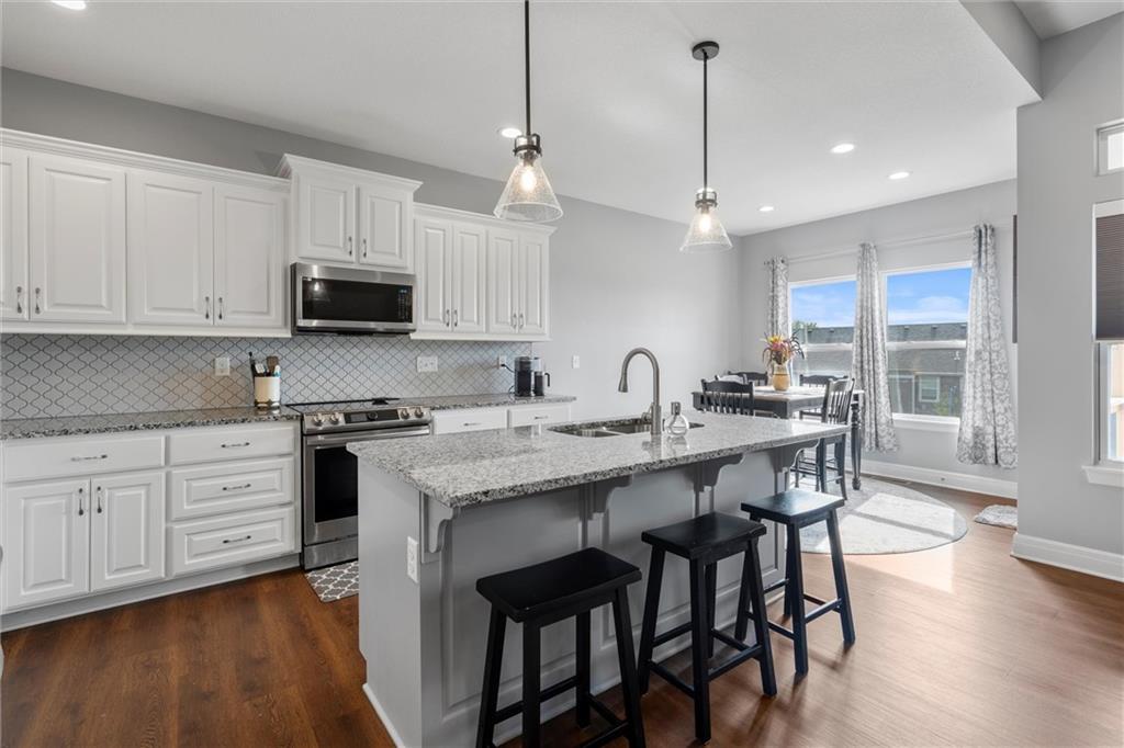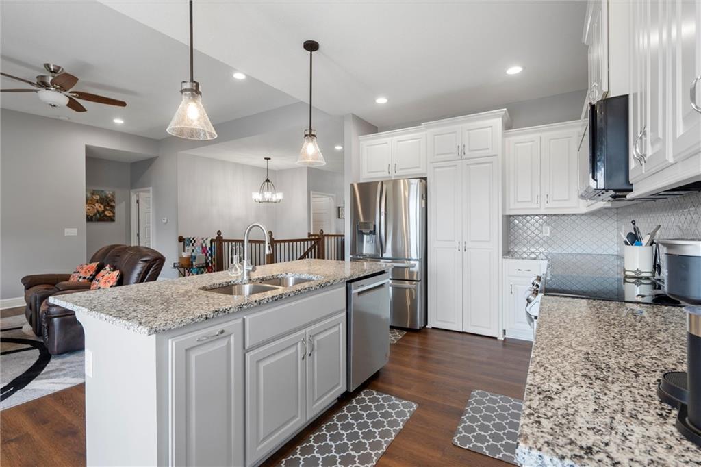 Welcome home to this stunning 4-bedroom, 3-bath ranch perfectly placed on a quiet cul-de-sac. From the moment you walk in, the open floor plan invites you to relax and gather, featuring a cozy fireplace, spacious eat-in kitchen with granite counters, large island, Induction range with built in air fryer and a walk-in pantry built for convenience. The master suite is your private retreat, offering double vanities, a jetted tub for soaking, and a separate shower. Downstairs, the finished lower level with tall ceilings provides endless possibilities with a family room, tons of storage, and 2 additional bedrooms for guests or hobbies. The oversized garage has additional storage, LED Beyond bright lights and 220 plugs for tools and ev charging. Step outside and fall in love with the backyard oasis. Beautifully landscaped and fully fenced, it’s designed for entertaining with a wrought iron fence, custom patio, covered deck with steel tv, and sprinkler system to keep everything lush and green. Lawn care is included, so you can spend more time enjoying the space instead of maintaining it. This is more than just a house—it’s a place to live, gather, and create memories.