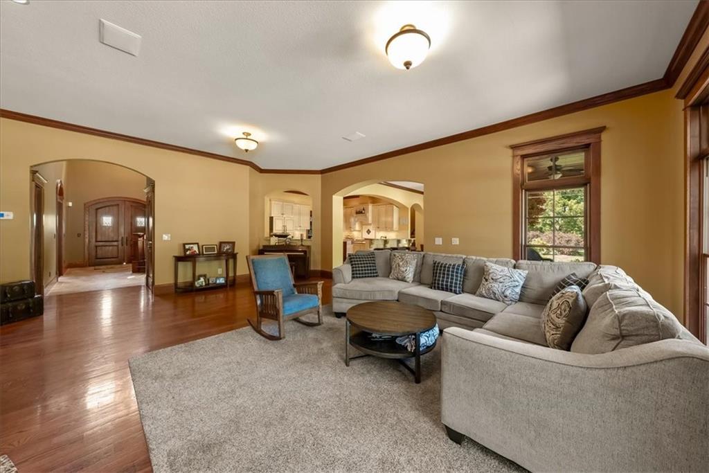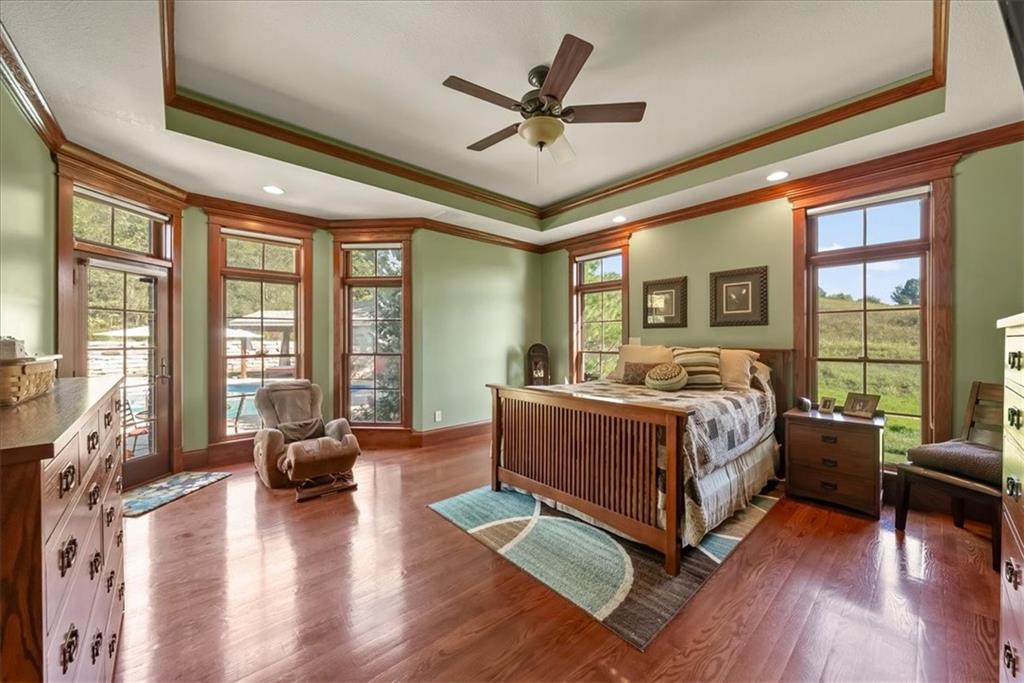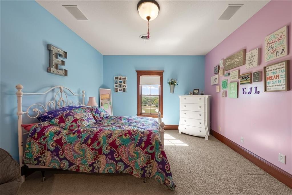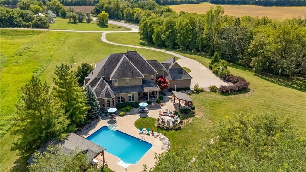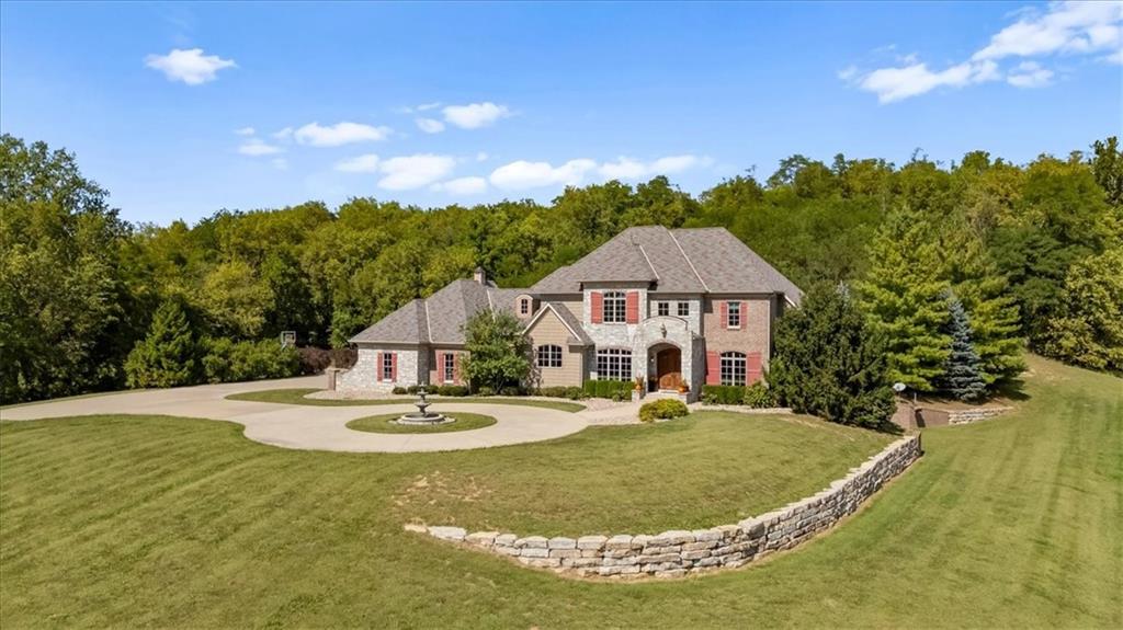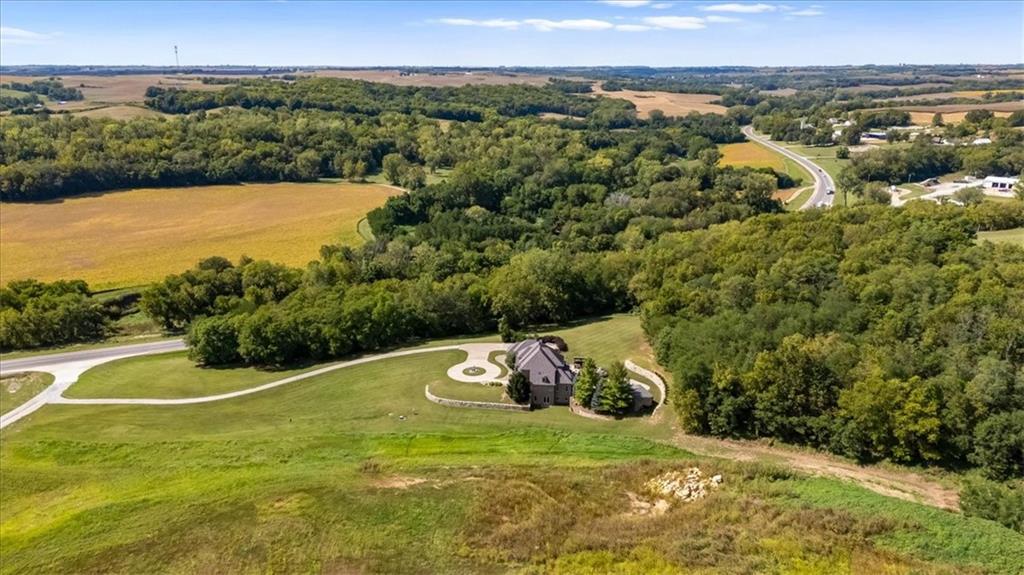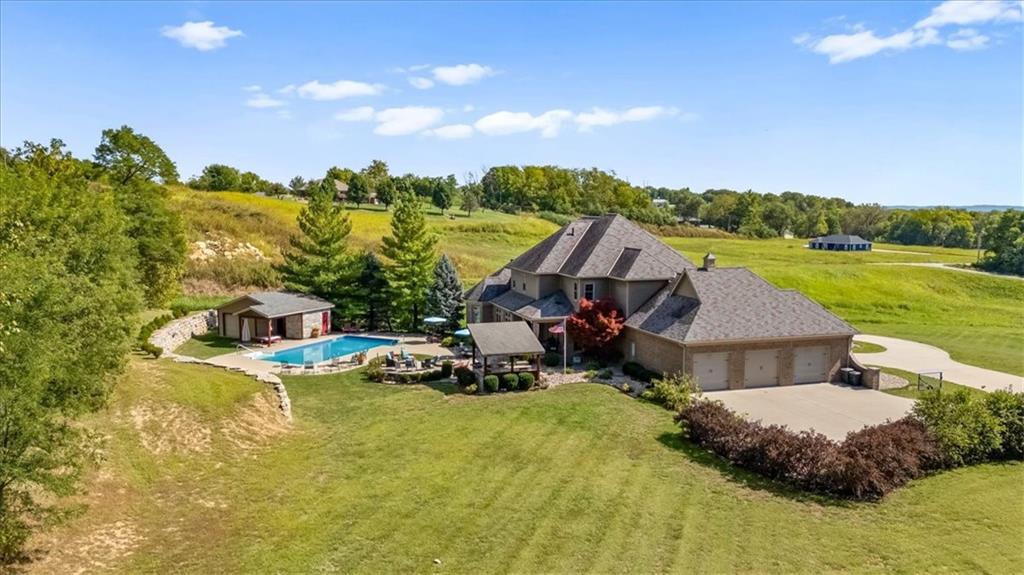 Exquisite Custom Luxury Estate on 10.51 Acres. 13 Miles from Mosaic in St Joseph, MO and 35 miles to MCI Airport. This breathtaking custom-built estate combines timeless craftsmanship with resort-style living. Offering 5 spacious bedrooms and 5.5 spa-inspired baths, this home is designed for both elegance and comfort. The primary suite is a serene retreat featuring a deep Asian soaking tub, walk-in steam shower with heated floors and expansive walk-in closets. Guests are welcomed through solid oak custom doors in soaring ceilings and a dramatic staircase setting the tone for the home’s refined style. At the heart of the home, the chef’s kitchen boasts old-world style stamped tin ceilings, hand-glazed maple cabinetry, granite countertops, hammered copper sinks, Hazaki ice machine and a spacious walk-in pantry. A formal dining room and inviting living room with fireplace provide the perfect spaces for gatherings. Additional features include a private office, custom main-floor laundry and art room/office. Upstairs, three bedrooms each feature their own en-suite baths, with a flexible bonus space for added versatility. The finished walk-out lower level is designed for entertainment and wellness, offering a media room, private gym and abundant storage. Outdoors, the property transforms into your personal resort with a sparkling, heated pool, pool house with bathroom and garage, outdoor kitchen and bar, expansive patios and a firepit for evening relaxation. Every detail reflects the highest standard of luxury, making this estate the perfect blend of sophistication, comfort and lifestyle!