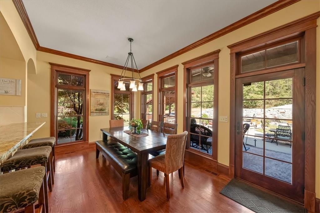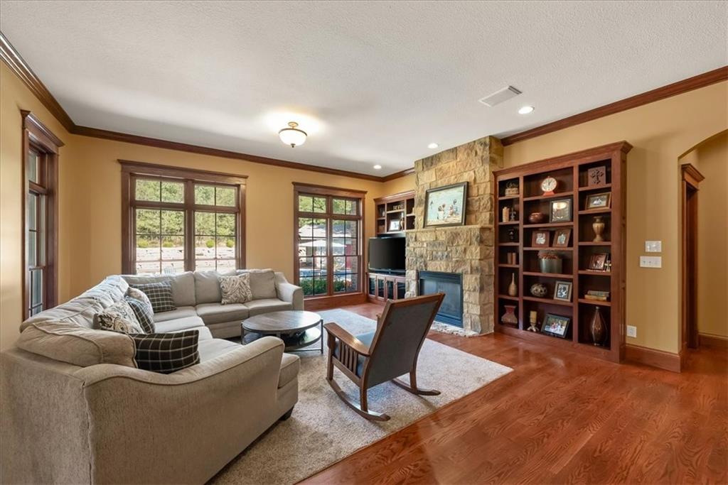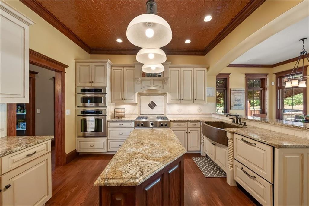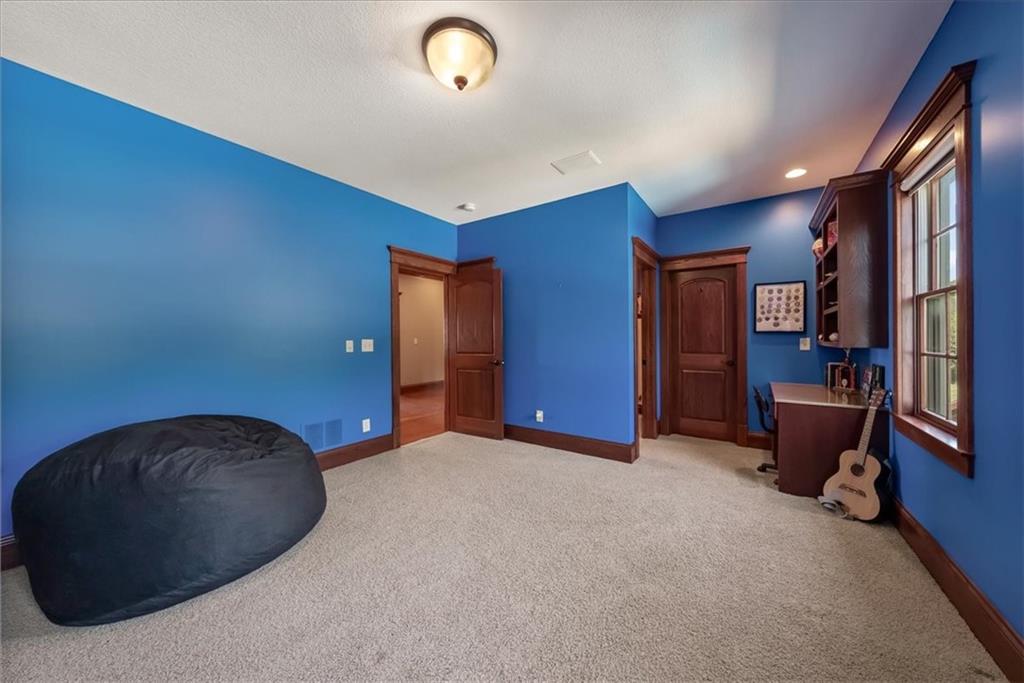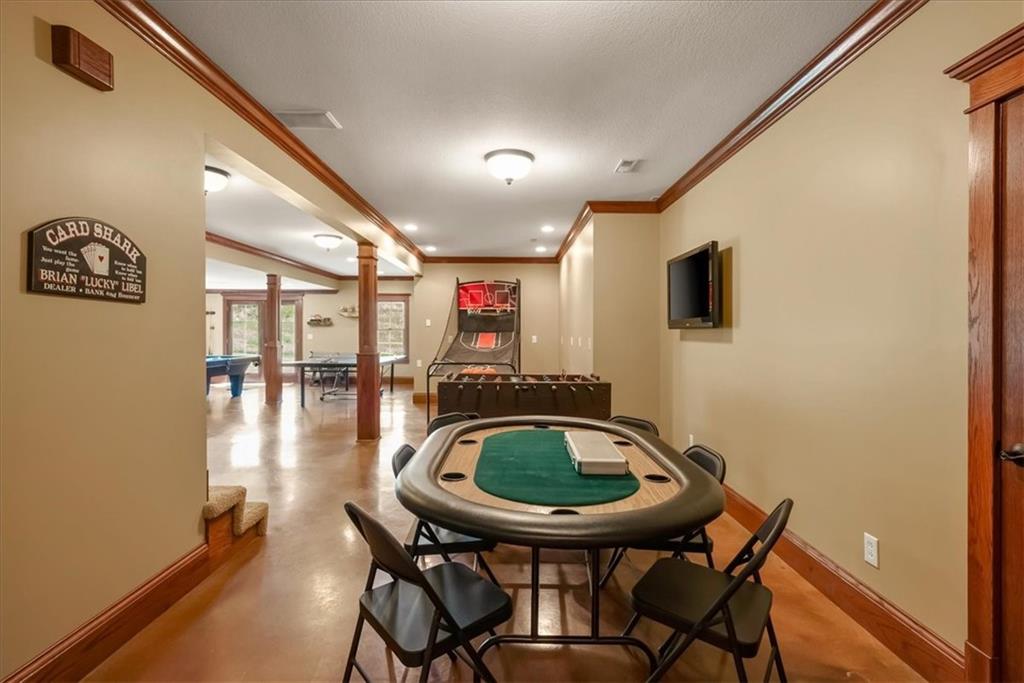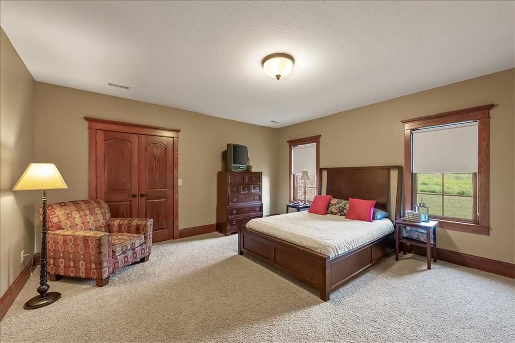 Exquisite Custom Luxury Estate on 10.51 Acres. 13 Miles from Mosaic in St Joseph, MO and 35 miles to MCI Airport. This breathtaking custom-built estate combines timeless craftsmanship with resort-style living. Offering 5 spacious bedrooms and 5.5 spa-inspired baths, this home is designed for both elegance and comfort. The primary suite is a serene retreat featuring a deep Asian soaking tub, walk-in steam shower with heated floors and expansive walk-in closets. Guests are welcomed through solid oak custom doors in soaring ceilings and a dramatic staircase setting the tone for the home’s refined style. At the heart of the home, the chef’s kitchen boasts old-world style stamped tin ceilings, hand-glazed maple cabinetry, granite countertops, hammered copper sinks, Hazaki ice machine and a spacious walk-in pantry. A formal dining room and inviting living room with fireplace provide the perfect spaces for gatherings. Additional features include a private office, custom main-floor laundry and art room/office. Upstairs, three bedrooms each feature their own en-suite baths, with a flexible bonus space for added versatility. The finished walk-out lower level is designed for entertainment and wellness, offering a media room, private gym and abundant storage. Outdoors, the property transforms into your personal resort with a sparkling, heated pool, pool house with bathroom and garage, outdoor kitchen and bar, expansive patios and a firepit for evening relaxation. Every detail reflects the highest standard of luxury, making this estate the perfect blend of sophistication, comfort and lifestyle!