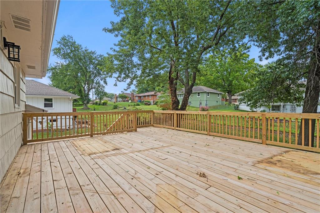 This home features a brand new kitchen with white cabinets, modern fixtures, and plenty of counter space. Fresh carpet in the finished lower level, updated bathroom with double sinks and walk-in shower, and new railing and spindles on the large deck. Spacious bedrooms, bay window in the living room, and flexible basement space with fireplace. Seller is willing to mudjack or repair the patio with an acceptable offer. Convenient to parks, schools, shopping, and highways. Move-in ready—schedule your showing today!