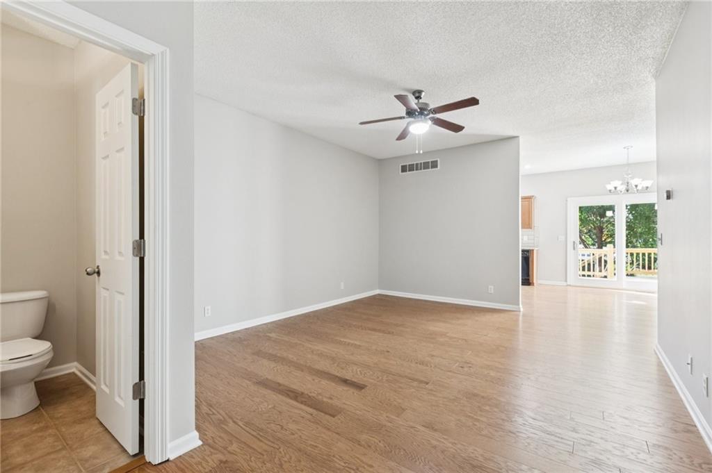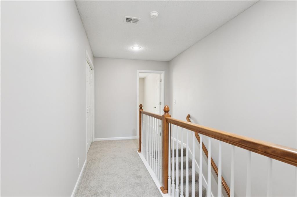 Move in READY! So Much New! This beautifully updated middle unit shines from top to bottom. Brand-new hardwood floors span the main level, complemented by new carpet on the stairs and in both bedrooms upstairs. Fresh interior paint enhances the main and second floors. The upstairs front bathroom features new tile flooring and a modern light fixture. The kitchen boasts new granite countertops, a new sink, and a stylish tile backsplash. Stove and refrigerator are less than a year old; furnace and water heater are approximately one year old. Both bedrooms include private full baths and BIG walk-in closets. Enjoy outdoor living on the new 12x16 deck, plus a big finished daylight basement for extra space. New sliding glass door. HOA information available at willowridgeonline.org.