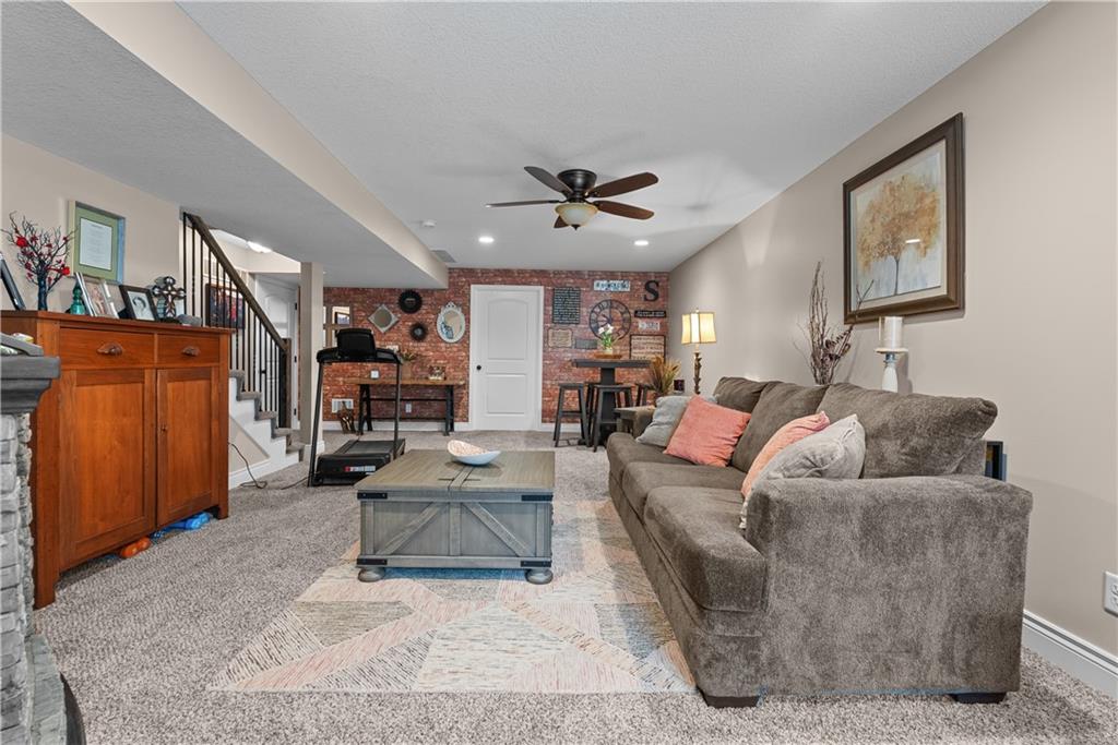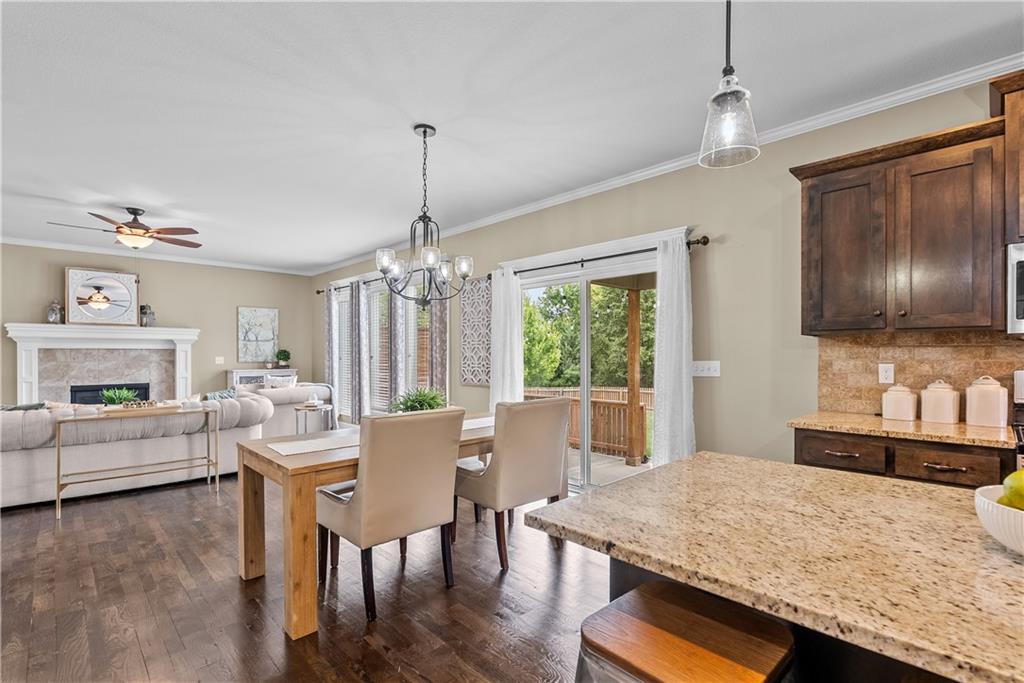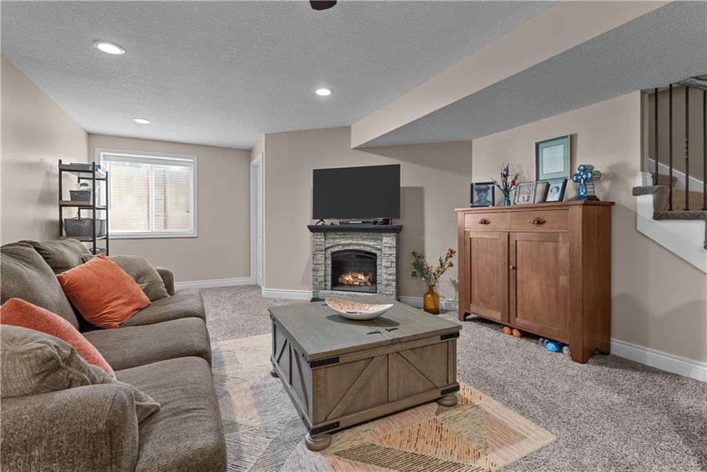 Welcome to this beautifully maintained 2-story home in the sought-after Parkway Estates community and award-winning Blue Springs School District! Nestled on a quiet cul-de-sac lot, this home offers 4 bedrooms, 2.5 baths, and over 2,700 sq ft of living space designed for both style and function. Step inside to find an inviting open floor plan with hardwood flooring, crown molding, and a cozy gas fireplace in the living room. The kitchen features granite countertops, a large island, stainless steel appliances, and rich cabinetry—perfect for everyday cooking and entertaining alike. Upstairs, the spacious primary suite offers a tray ceiling, soaking tub, dual vanities, and a walk-in closet with built-in organization. The finished lower level provides additional living space with room for a rec area, playroom, or home gym. It’s also stubbed for a future bathroom and includes multiple storage areas. Outside, enjoy the fully fenced backyard that backs to serene green space with no rear neighbors, along with a covered patio complete with privacy screen and string lighting—an entertainer’s dream! Additional highlights include a 3-car garage, new roof (2024), whole-home humidifier, water softener, and original HVAC and water heater (2016) still in great condition. Neighborhood amenities include a community pool, playground, and sidewalks, providing the perfect blend of convenience and community. This home checks every box—space, location, and lifestyle—all in the heart of Blue Springs.