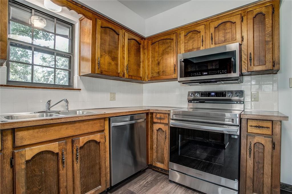 Brand NEW DRIVEWAY! Welcome home! Fresh paint, carpet and luxury vinyl flooring throughout! You're going to love this oversized living room with soaring ceilings and cozy fireplace! Eat in kitchen has a pantry, loads of cabinets, stainless stove, micro and dishwasher. Fridge stays, too! Formal dining room! Walk out from the eat in kitchen to nice sized deck and level back yard. Attic fan for more efficient utilities. Good sized bdrms, new ceiling fans, fresh paint and carpet. Master has walk in closet and new step in shower! There's a tub in the full hall bath. Downstairs rec room is getting new flooring and you have time to pick your color! Great family room layout with brick fireplace, half bath, laundry and additional storage. Driveway and garage are oversized, workbench area in garage for tinkerin and peg boards line the west wall. Walk out door from garage as well. Roof 2018. Very well maintained home. Extra deep driveway for RV or extra vehicle parking and no HOA dues.