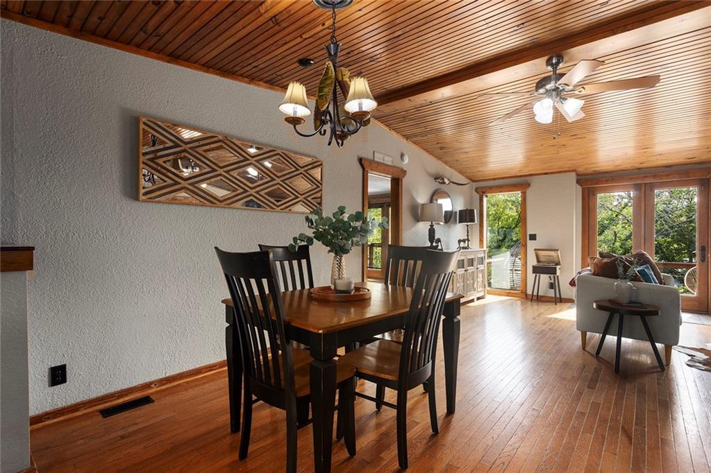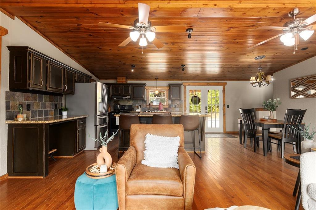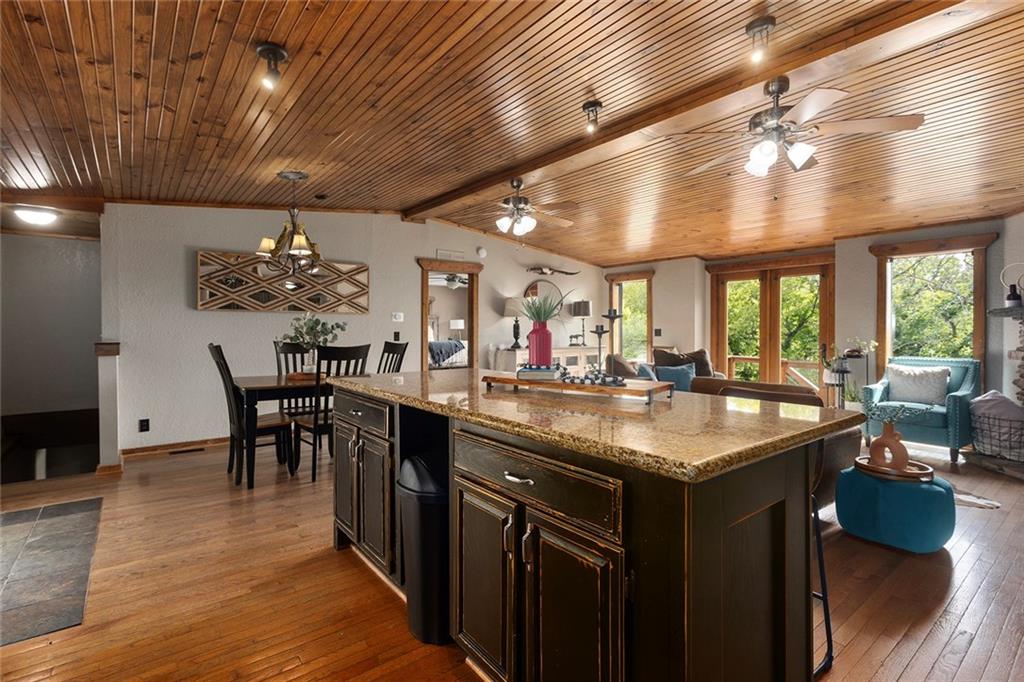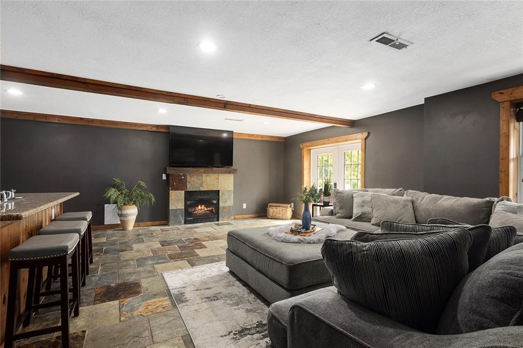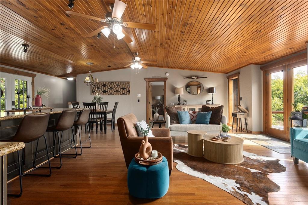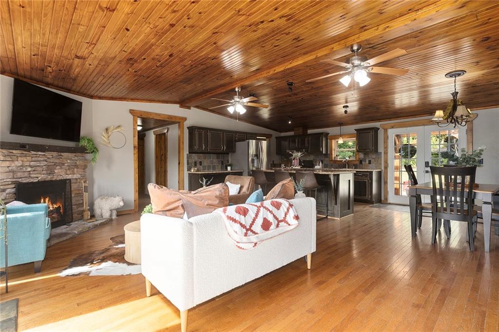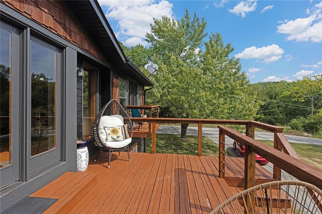 This beautiful 4-bedroom, 3-bathroom home sits on a rare double lot in highly sought-after Lake Lotawana. Featuring an open floor plan with soaring ceilings, custom wood accents, and stunning hardwood floors, the home is filled with natural light. The spacious kitchen offers a large island and plenty of storage, while the primary suite provides a relaxing escape with a soaking tub and walk-in shower. A finished basement adds a cozy family room with a wet bar and an additional bedroom that feels like a second primary suite with its own tub, walk-in shower, and oversized closet. Energy efficiency meets comfort with solar panels that keep utility costs low, and a hot tub hookup is already in place. Outdoor living is exceptional with four different areas to relax or entertain: a large front deck perfect for outdoor dining, a separate fire pit area, and two back decks plus a covered patio where you can enjoy the sunrise and sunset any time of year. A two-car garage and double driveways provide plenty of room for cars, golf carts, and even boat parking. Just a quick golf cart ride from dining, shopping, parks, tennis and pickleball courts, and with easy access to two of the lake’s entrances, this home offers both convenience and the Lake Lotawana lifestyle.
