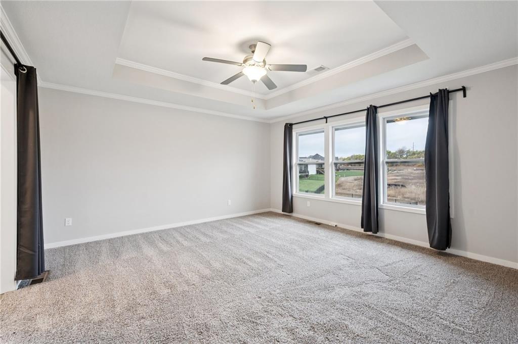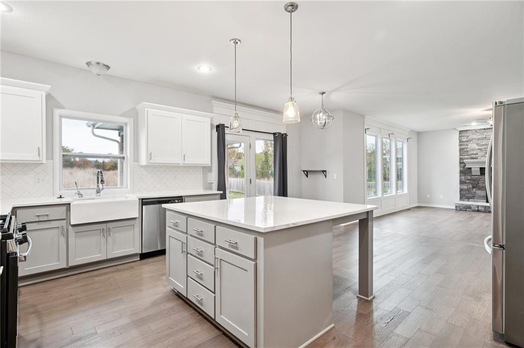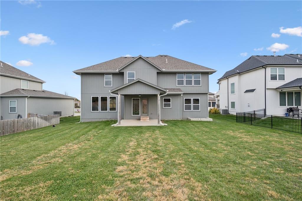 This beautiful, move-in-ready home is located in the highly desirable Stonebridge community and offers 5 spacious bedrooms, 4 full bathrooms, and a 3-car garage. On the main level, you’ll find a formal dining room off the front hall, a large great room with a stone direct-vent fireplace and wood mantle, and a gourmet kitchen featuring a granite center island, an eat-in area, and a walk-in pantry. The main floor also includes a fifth bedroom, ideal for guests or as a flex space, conveniently located next to the mudroom with a boot bench and entry closet. Upstairs, the expansive primary suite offers vaulted ceilings and a luxurious en-suite bathroom with a soaking tub and walk-in shower. The second floor also features three additional bedrooms, two full bathrooms, and a tiled laundry room. All bedrooms are designed with vaulted ceilings, while the bathrooms and laundry room have tile flooring for added durability and style. Outside, enjoy a covered patio, perfect for relaxing or entertaining, and a sprinkler system for added convenience. The Stonebridge community offers resort-style amenities, including 4 pools, 2 clubhouses (one with a gym), parks, and playgrounds, all within a vibrant, family-friendly environment. You’ll also be just minutes away from top-rated Blue Valley schools, making this home a perfect place for families.