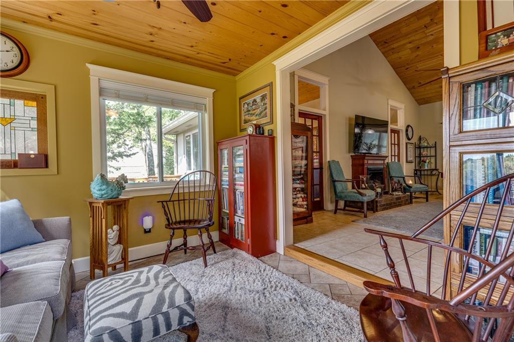 Sugar Valley lakes, 1.5 story home overlooking the lake on two mature tree covered lots. Enjoy the 3 decks & bay windows. This home is 2000 sq ft with a detached 3 car garage and 8x12 garden shed