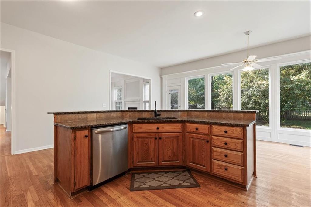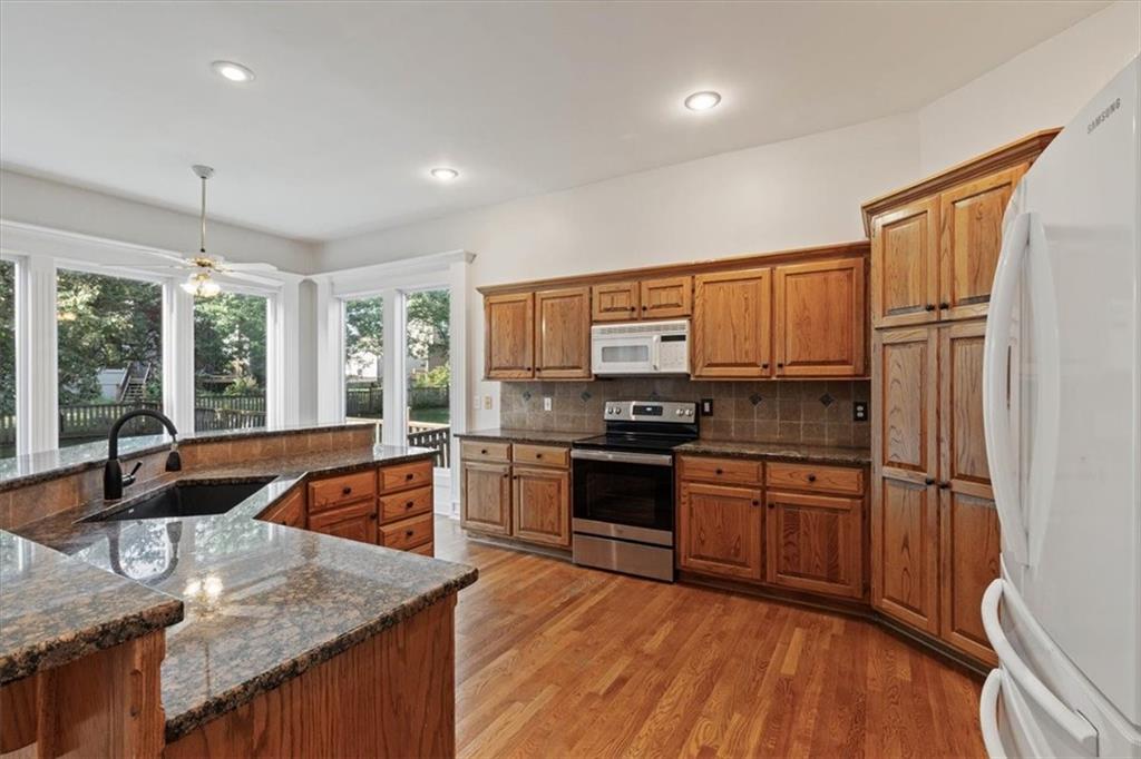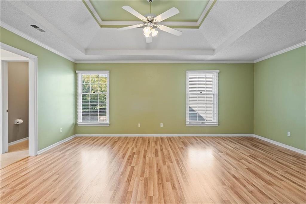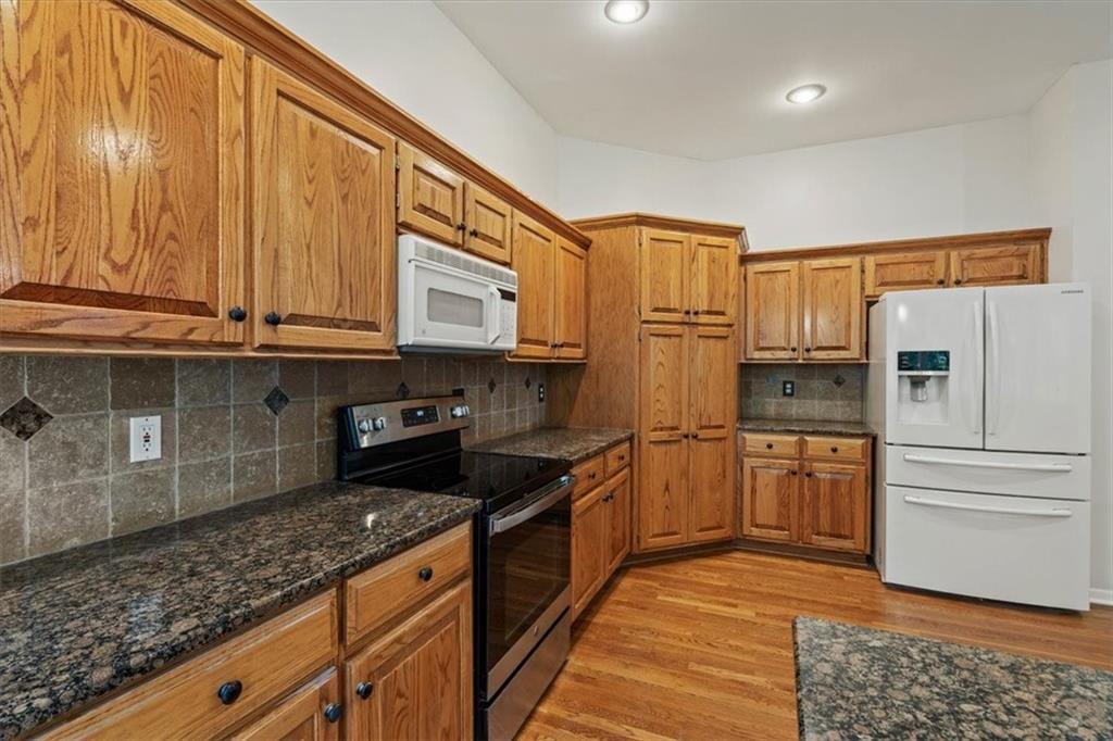 Spacious 2-Story in Overland Park with Olathe Schools! This 4 bed, 3.5 bath home with over 2,500 sq ft has the space and updates you’ve been waiting for. Step inside to soaring ceilings, hardwood floors, and a wall of windows that flood the living areas with natural light. The main level features a formal dining room, a large living room with fireplace, and a kitchen with granite counters, stainless appliances, and a sunny breakfast area overlooking the fenced backyard. Upstairs, the primary suite is a true retreat with two walk-in closets and a spa-like bath featuring dual vanities, a jetted tub, and walk-in shower. The remaining three bedrooms all feature new hardwoods — two share a convenient Jack-and-Jill bath with double vanities and full shower, while the third enjoys its own private en-suite. Laundry is also located on the bedroom level for maximum convenience. Add in a brand-new garage door, fenced yard, and prime location near shopping, dining, parks, and Olathe Schools — this home checks every single box! Come see it today!