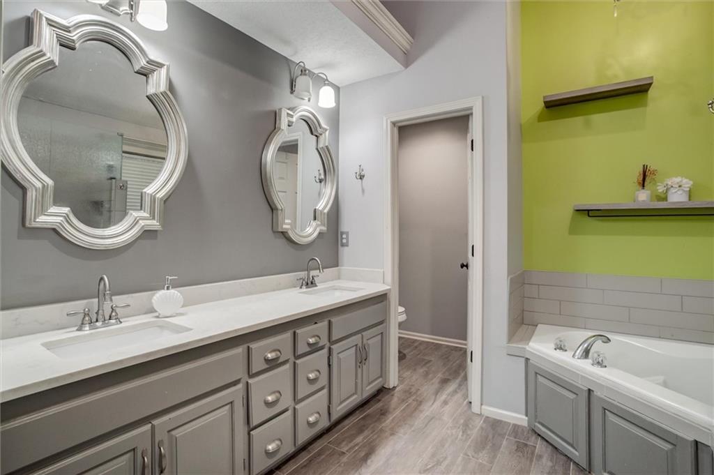 WELL CARED FOR 2 Story home in Willow Brooke! STALEY SCHOOLS!!! Gorgeous entryway with tall ceilings, floor to ceiling windows and staircase with wrought iron spindles. Newly finished hardwood flooring throughout!!! Eat-in kitchen with large peninsula, lots of cabinet space, two toned painted cabinets, custom back splash and stainless steel appliances. Fridge, washer/dryer stay! Living room with fireplace and luxurious formal dining room with wainscoting. Laundry and half bath on main level off of deep 3 car garage. New light fixtures and paint! Newer roof! Kitchen walks out to patio overlooking a koi pond creating a peaceful landscape. Upstairs boasts 4 spacious bedrooms. LARGE primary suite with remodeled bath with double vanities, walk in shower and jetted tub. Finished basement features two sitting areas, a wet bar, workout room and half bath. LOTS of storage!!! The HUGE fenced in back yard is right behind the neighborhood tennis courts & pool! Don't miss out on this one of a kind home!!! OPEN HOUSE SUN, 1/18, NOON-2PM!