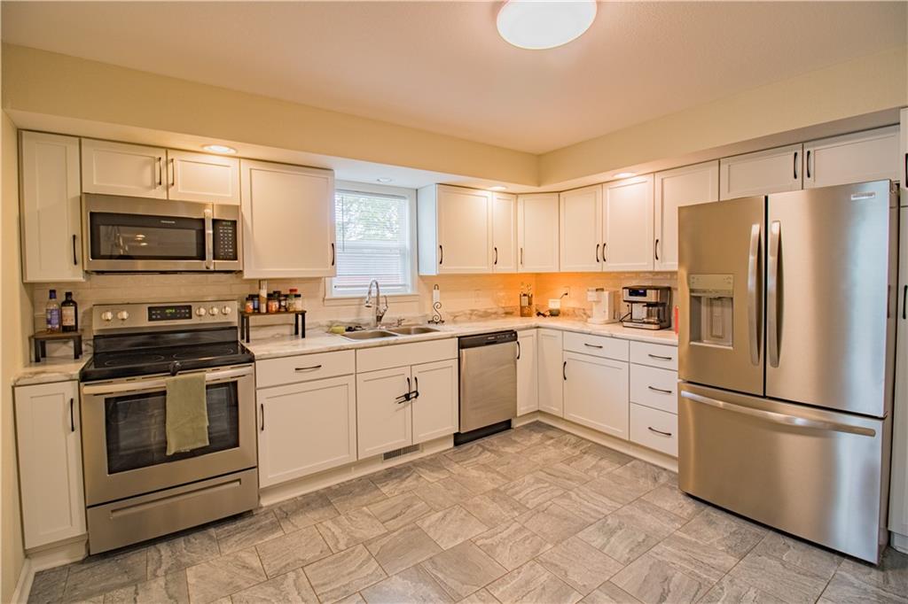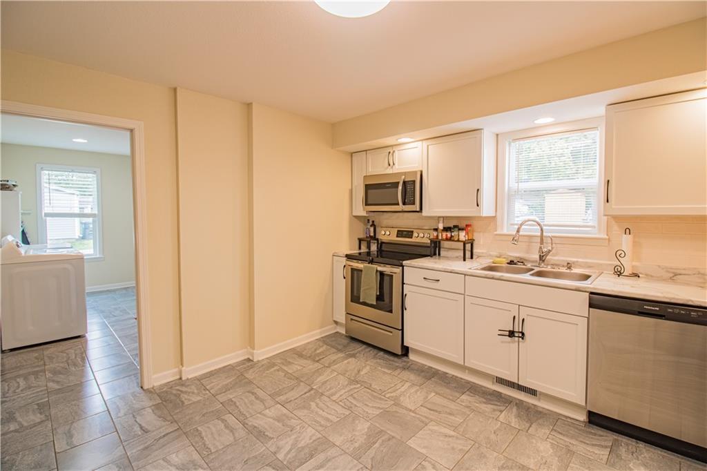 Welcome to this beautifully updated 1.5 story home located in an adorable and quiet neighborhood. This home was completely renovated in 2022 giving it a clean and modern look. From the exterior of the home you will notice the newer roof (2022) and inviting covered front porch waiting to be decorated for the holidays. Your family will love the updated touches inside the home including the beautiful LVP flooring throughout, recessed lighting and vaulted ceiling in the spacious living room. The large primary bedroom is equipped with a walk-in closet. The large laundry room is located on the main level for added convenience. You will love the updated kitchen cabinets, countertops, and matching stainless steel appliances. The upstairs provides a large third bedroom, full bathroom, and walk in closet. There is a partial basement perfect for added storage and storms. Major updates to this home include new roof, electrical wiring, plumbing, HVAC, and gravel in the driveway all completed in 2022. This is the ultimate move in ready home waiting for its new owners!