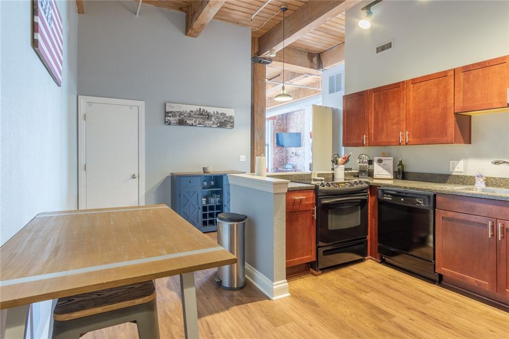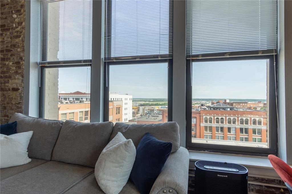 Bright corner energy, skyline views, and serious style make this studio simply impossible to resist. Plus, it comes complete with furnishings, making it rental-ready from day one. Oversized windows fill the space with natural light, highlighting a mix of industrial edge and cozy comfort. Wood floors, exposed brick, open ductwork, and a tongue-and-groove ceiling adds depth and character, built-ins provide practicality, and a window seat offers a quiet spot for morning coffee or a good book. The tucked-away kitchen includes all the essentials, ample cabinet space, and room for a small eat-in area. A generously sized bathroom and in-unit laundry add everyday convenience. Soho Lofts sits in the historic Garment District, putting dining, bars, shops, and entertainment right at your doorstep. Residents also enjoy a rooftop deck with panoramic skyline views, a fitness center, sauna, yoga room, and a club room for gathering with friends. The River Market, Power and Light, and the Crossroads are just a quick stroll or streetcar ride away. Garage parking is available for lease at an additional cost. Whether you’re searching for a smart investment (think low HOA with 1 month minimum rental), a downtown retreat, or your first loft, this cutie is full of possibilities.