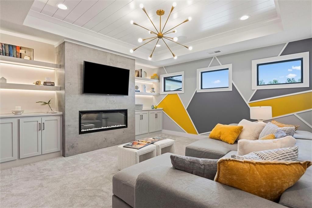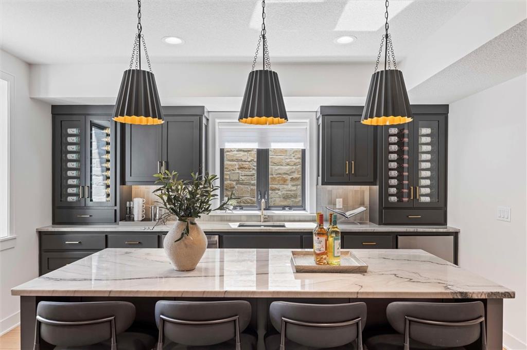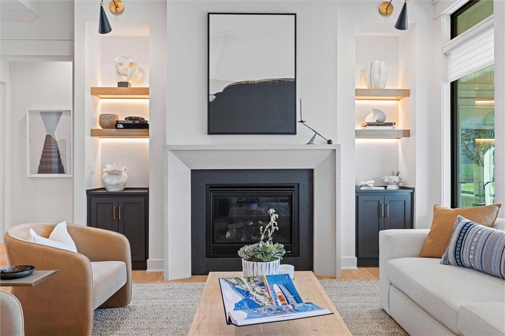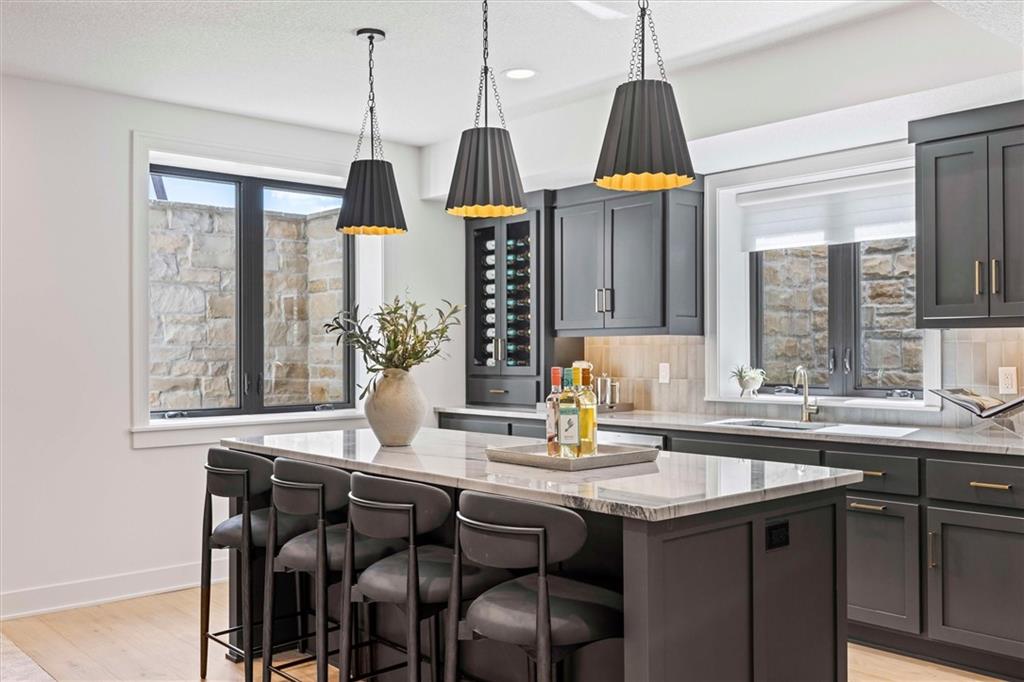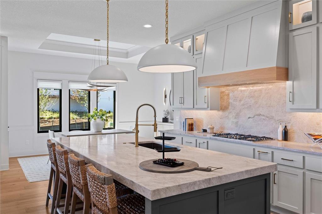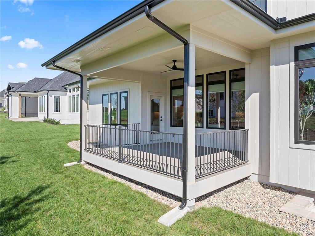 Introducing The Santa Barbara, Hilmann Home Building’s breathtaking new 1.5-story design, prominently showcased on Lot 49 along Model Row. This exceptional floor plan offers 7 bedrooms and 6.5 baths, delivering an unparalleled combination of luxury, comfort, and functionality. The open-concept main level features a stunning great room with hardwood flooring, a vaulted ceiling, a floor-to-ceiling fireplace, and seamless views of the covered outdoor living area—ideal for year-round entertaining. The gourmet kitchen highlights beautifully crafted cabinetry, a large island with granite countertops, and a spacious walk-in pantry that can double as a prep kitchen. The primary suite is thoughtfully designed with a spa-inspired bathroom featuring a large vanity, walk-in shower, freestanding soaking tub, and two expansive walk-in closets. A private door leads directly from the primary bedroom to the covered porch for added convenience. The main-level laundry room includes a utility sink, cabinetry, and dual access from both the primary suite and the main living area. A fifth bedroom on this level serves perfectly as an office or study and includes access to a full bath. Each bedroom throughout the home boasts its own private bathroom and walk-in closet, ensuring comfort and privacy for all. The second floor offers a generous loft area complete with a fireplace, custom built-ins, and shelving, as well as an additional laundry hookup for ease of use.The fully finished walkout basement is an entertainer’s dream, featuring two additional bedrooms, a Hollywood-style bathroom, a half bath, a large wet bar with an island, a cozy fireplace, and expansive recreational space. Come explore this beautifully crafted home, loaded with upgrades and situated in a truly exceptional neighborhood. Taxes are estimated. Models Open Daily, 11 am – 5pm, and Sunday, 12-5pm. Visit the sales office at 12411 W 183rd Terrace, Overland Park. THIS IS A MODEL HOME AND NOT FOR SALE AT THIS TIME.