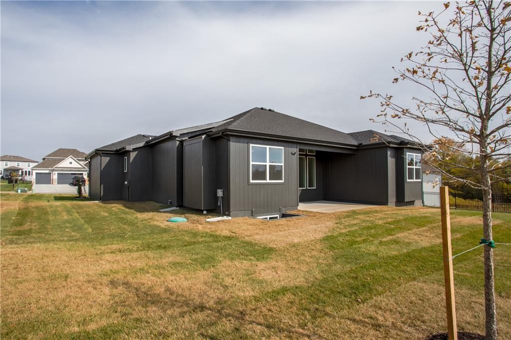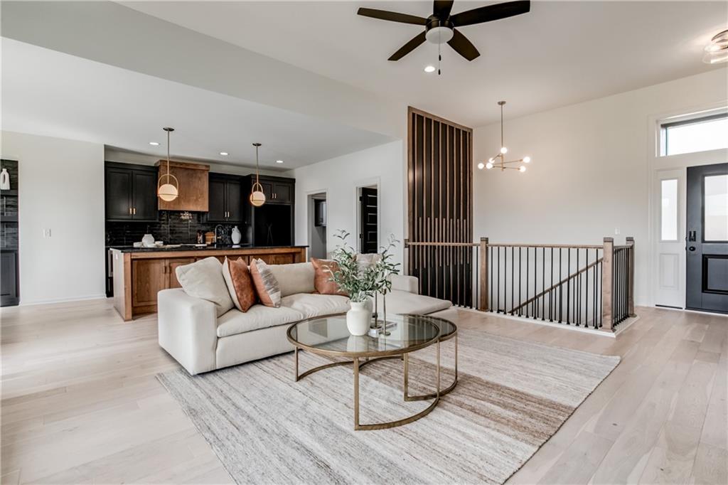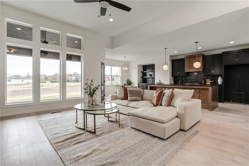 The Woodland II plan features a modern design and a WOW around every corner! Enjoy an open layout flooded with natural light, chef inspired kitchen, walk-in pantry, built-in buffet at the dining nook, covered rear deck, and a spacious finished lower level with stunning wet-bar. This home is located in the Grain Valley School District. **Photos are of a previous model.
