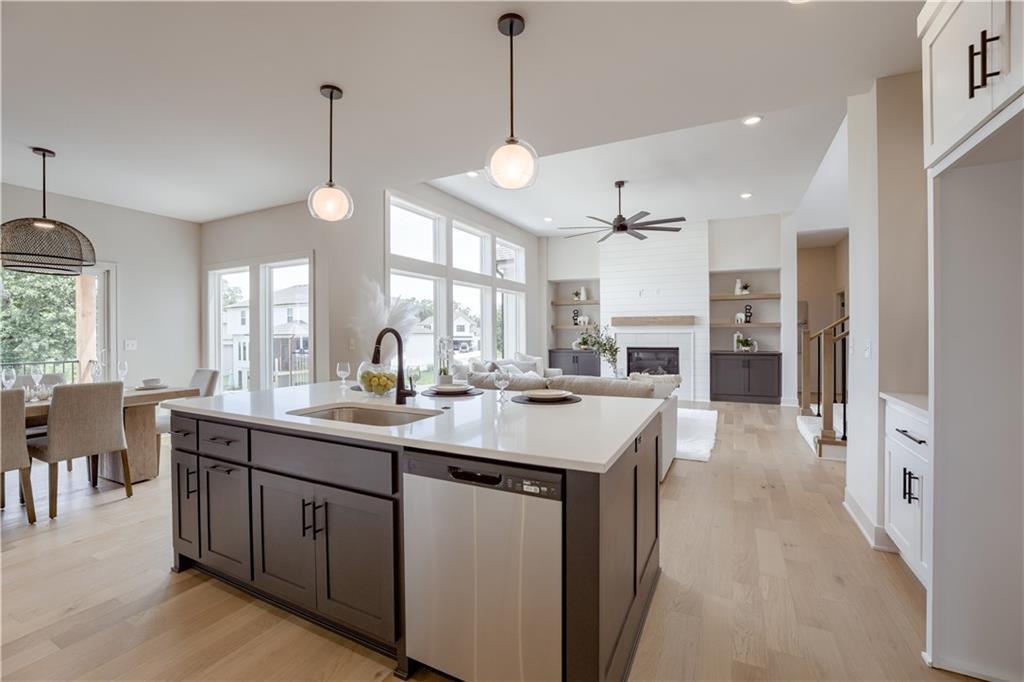 The Glendale Grande blends style, function, and comfort in every detail. The open gathering room centers around a fireplace with a quartz mantel and tile surround, flowing seamlessly into a kitchen designed to impress—granite countertops, tile backsplash, under-cabinet lighting, soft-close drawers, gas cooktop connection, and a spacious walk-in pantry. Every bedroom offers a walk-in closet, while the primary suite features a quartz double vanity and a zero-entry tiled shower with dual shower heads. Wood floors extend throughout the main level, with tile in the baths and the laundry room. Outdoor living shines with a covered composite deck, lower patio, and walkout lower level including John Deere doors for mowing equipment or tools. Durable finishes include board-and-batten siding with stone, SMART panel siding, and a premium 50-year Presidential roof with a standing seam metal roof. Practical upgrades—like a humidifier, gas HVAC system, 50-gallon water heater, and garage heater—make this home as efficient as it is beautiful.