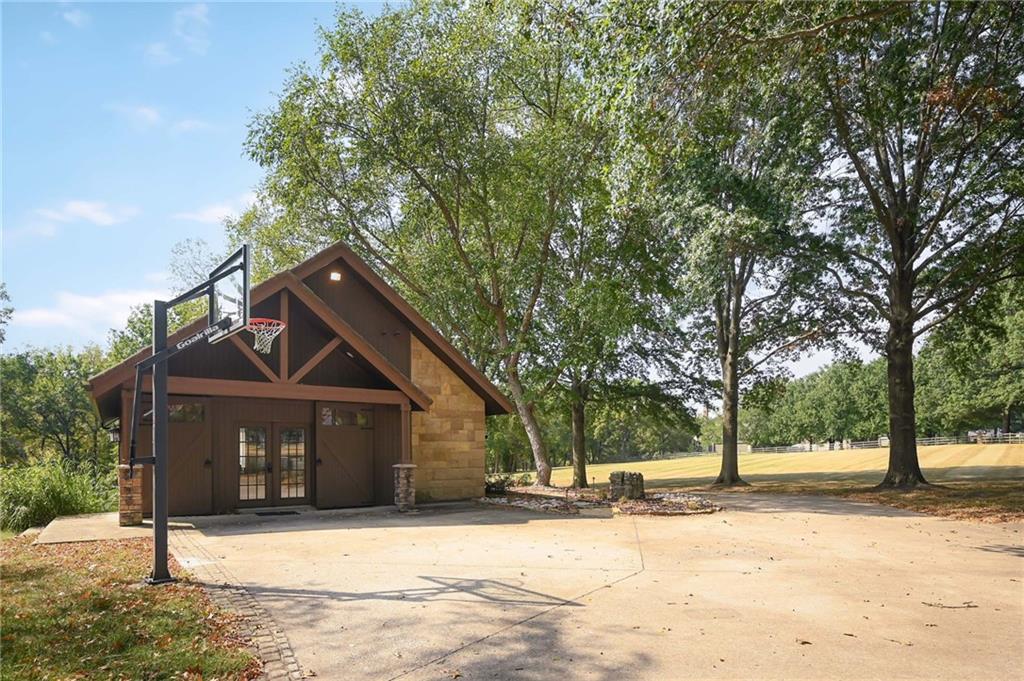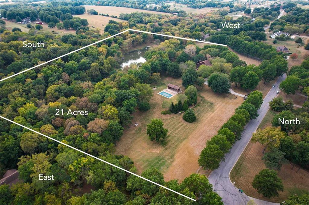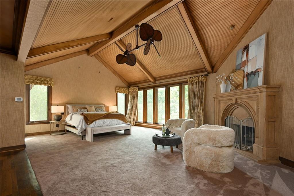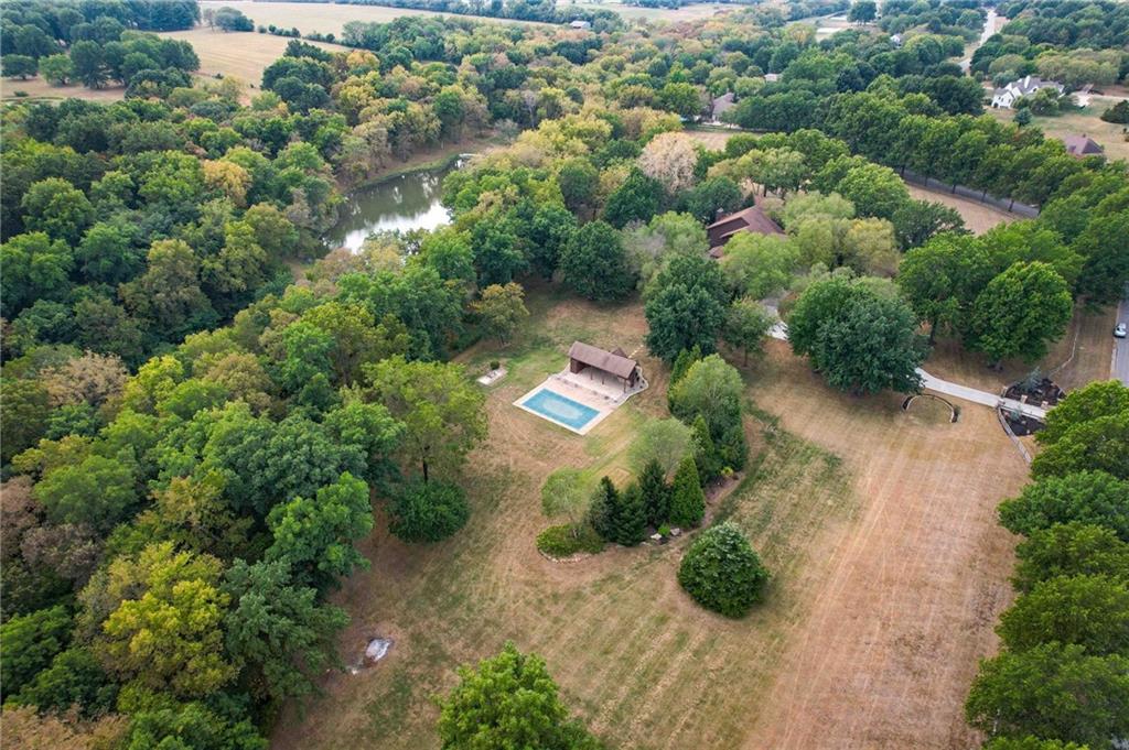 One-of-a-kind gated estate on 21 dreamy acres (4 parcels)! No HOA, tucked into a quiet neighborhood of mature trees and estate lots. This property is packed with luxurious amenities: heated saltwater outdoor pool (deep enough to dive), pool house cabana with WiFi, 117-yard golf hole, trails, volleyball, basketball, firepits and a 2+ acre stocked pond! The main home offers approx. 7,000 sq ft with 2 true primary suites upstairs, a 3rd bedroom in the finished lower level, and a 4th bedroom overlooking the flex room, and attached HVAC temperature controlled 6-car tandem garage with epoxy floors. Even more space is found in the charming two-bedroom carriage/guest house accessory the driveway with a 2 car garage. The Kitchen has brand new, high-end appliances, walk-in pantry with custom pull out storage, kitchen water filtration, two additional dishwasher drawers, and walks out to an oversized composite deck. The lower level has a bar for entertaining, fantastic theater room, a flex room with the indoor exercise pool that walks out to a covered porch. The home overflows with upgrades such as wide plank real wood floors with flush mount vents, whole house water softener, luxury trim work, Hunter Douglas blinds, steam showers, two laundry rooms, sliding screens at multiple screen doors, new exterior paint 2024, and more! This is more than a home -- it's a property designed for entertaining, relaxing, and enjoying the great outdoors! Enjoy a lifestyle and privacy views that can't be duplicated, all in a lovely neighborhood! There was once an additional bedroom in the main home that can be converted back for a 5th bedroom.