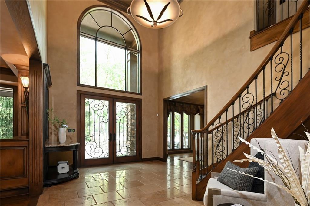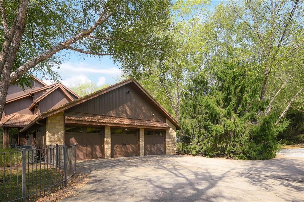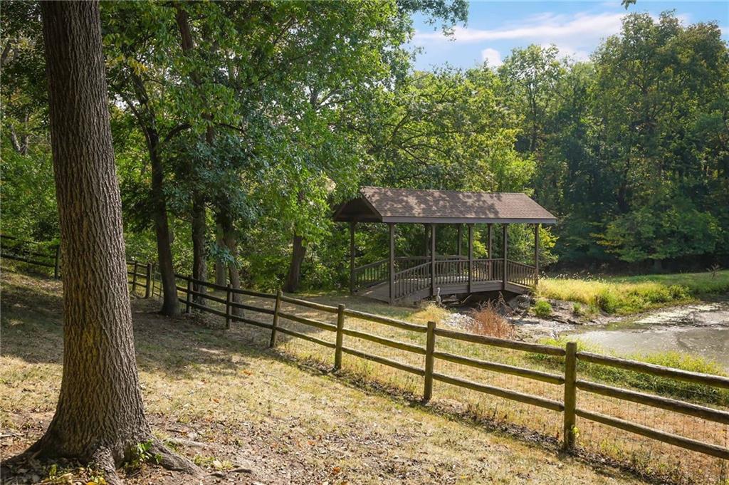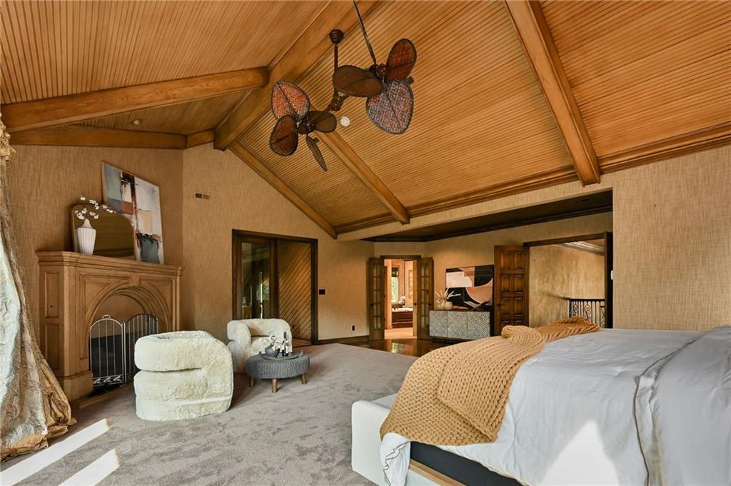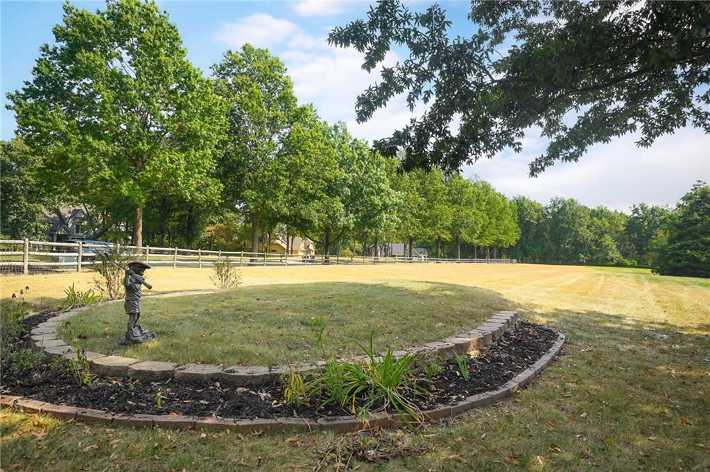 One-of-a-kind gated estate on 21 dreamy acres (4 parcels)! No HOA, tucked into a quiet neighborhood of mature trees and estate lots. This property is packed with luxurious amenities: heated saltwater outdoor pool (deep enough to dive), pool house cabana with WiFi, 117-yard golf hole, trails, volleyball, basketball, firepits and a 2+ acre stocked pond! The main home offers approx. 7,000 sq ft with 2 true primary suites upstairs, a 3rd bedroom in the finished lower level, and a 4th bedroom overlooking the flex room, and attached HVAC temperature controlled 6-car tandem garage with epoxy floors. Even more space is found in the charming two-bedroom carriage/guest house accessory the driveway with a 2 car garage. The Kitchen has brand new, high-end appliances, walk-in pantry with custom pull out storage, kitchen water filtration, two additional dishwasher drawers, and walks out to an oversized composite deck. The lower level has a bar for entertaining, fantastic theater room, a flex room with the indoor exercise pool that walks out to a covered porch. The home overflows with upgrades such as wide plank real wood floors with flush mount vents, whole house water softener, luxury trim work, Hunter Douglas blinds, steam showers, two laundry rooms, sliding screens at multiple screen doors, new exterior paint 2024, and more! This is more than a home -- it's a property designed for entertaining, relaxing, and enjoying the great outdoors! Enjoy a lifestyle and privacy views that can't be duplicated, all in a lovely neighborhood! There was once an additional bedroom in the main home that can be converted back for a 5th bedroom.