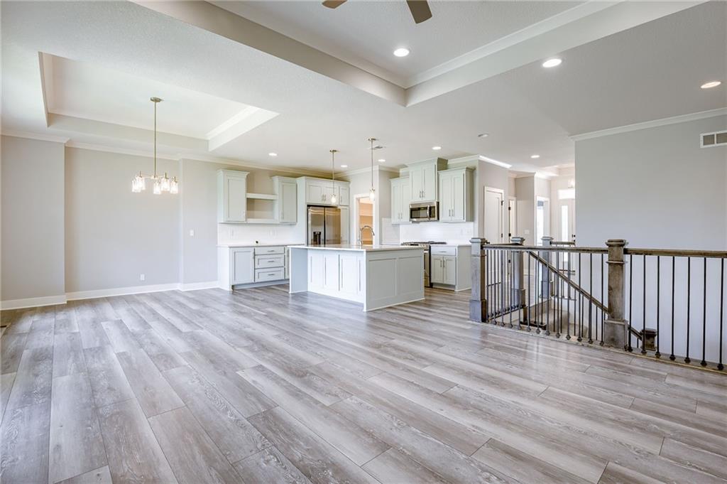 STUNNING Stand Alone Villa, Reverse 1 1/2 Story. "The Estes" by Lambie Grand LLC features 3 bedrooms, 3 baths, 2 car garage. First Floor has Primary Suite, 2nd Bedroom, 2nd Full Bath, Laundry/Mud Room, Great Room, Dining Room. Custom Kitchen with spacious Walk-in Pantry, Stainless Appliances, and Tray Ceilings. Hardwood floors in Entry, Great Room, Dining Room, and Kitchen. Lower Level has 3rd Bedroom, Large Rec Room, 3rd Full Bath, Optional 4th Bedroom, and plenty of storage. Covered Back Patio! Maintenance provided! Award winning Blue Valley School District!