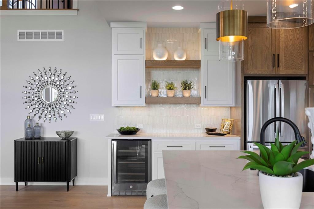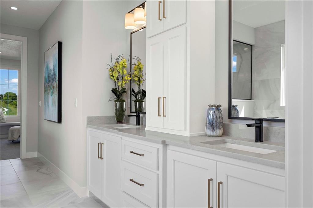 MODEL HOME – NOT FOR SALE. Welcome to the Cypress by J.S. Robinson Fine Homes on Lot 79 in Bristol Highlands. JS Robinson shows off their craft in this stunning new 1.5 Story model, the Gold Pick of the Parade! This home has all the right spaces in all the right places—starting with a main-level primary suite that feels like a retreat with its soaking tub, separate shower, and double vanity. The laundry room connects directly to the oversized walk-in closet (complete with built-ins), keeping life organized is easier than ever. The heart of the home is a 2-story great room drenched in natural light with a cozy gas fireplace, while a flex room with glass-paned double sliding pocket doors gives you space for an office, playroom, or creative nook right off the breakfast area. The kitchen is as stylish as it is functional, featuring cabinets to the ceiling, a quartz-topped oversized island, and a generous walk-in pantry. A large mudroom ties the flow together, leading out to the 3-car garage. Upstairs, zoned heating and cooling keep everyone comfortable. The spacious loft with a walk-in closet is already roughed in for a future bathroom, while three bedrooms offer private and shared spaces—one ensuite with its own bath, and two sharing a Jack-and-Jill with separate vanities. Future amenities include a clubhouse, resort-style pool, play area, sport courts, and more! Located in a premier Shawnee location close to parks, trails, shopping, dining and top-rated De Soto schools, all 5 minutes from Shawnee Mission Park (largest park in JoCo), Lake Lenexa, 7 premier golf courses, Lenexa City Center and Marketplace with the new Restaurant Row plus the numerous festivals in Shawnee and Lenexa throughout the year! Open Daily!