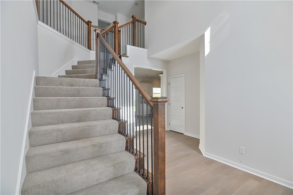 Prieb Homes "Harlow 5" plan showcases a grand entry with an open concept. The two-story vaulted entry leads to an open great room, kitchen and breakfast area. The large center island in the kitchen has ample work space plus bar-height seating and walk in pantry. and a dry bar is located between the great room and dining room. A boot bench and entry closet are in the mud room. 5th bedroom/flex room on the main level for guest or to use as an office with full bath. Generous size 2ndary bedrooms with vaulted ceilings and good closets. The upstairs laundry room can be accessed from the hallway or the walk-in closet of the spacious master bedroom. The master bathroom includes a tub and walk-in tile shower.