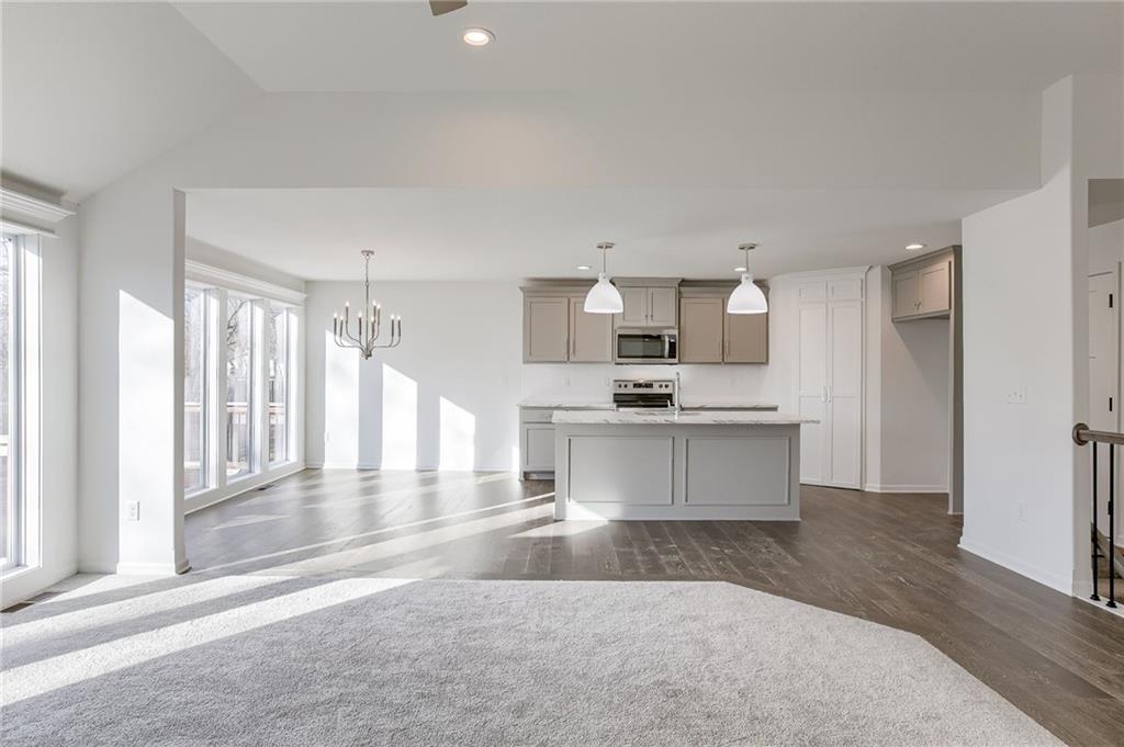 Beautiful nearly new Ranch, Private Backyard, Hardwoods, Tile, and trim upgrades, Kitchen Island, Walkin Closet, Pantry, Big unfinished basement, Daylight basement with wonderful deck, All the goodness of a small community but close enough to shopping, dining, and big city things to do!