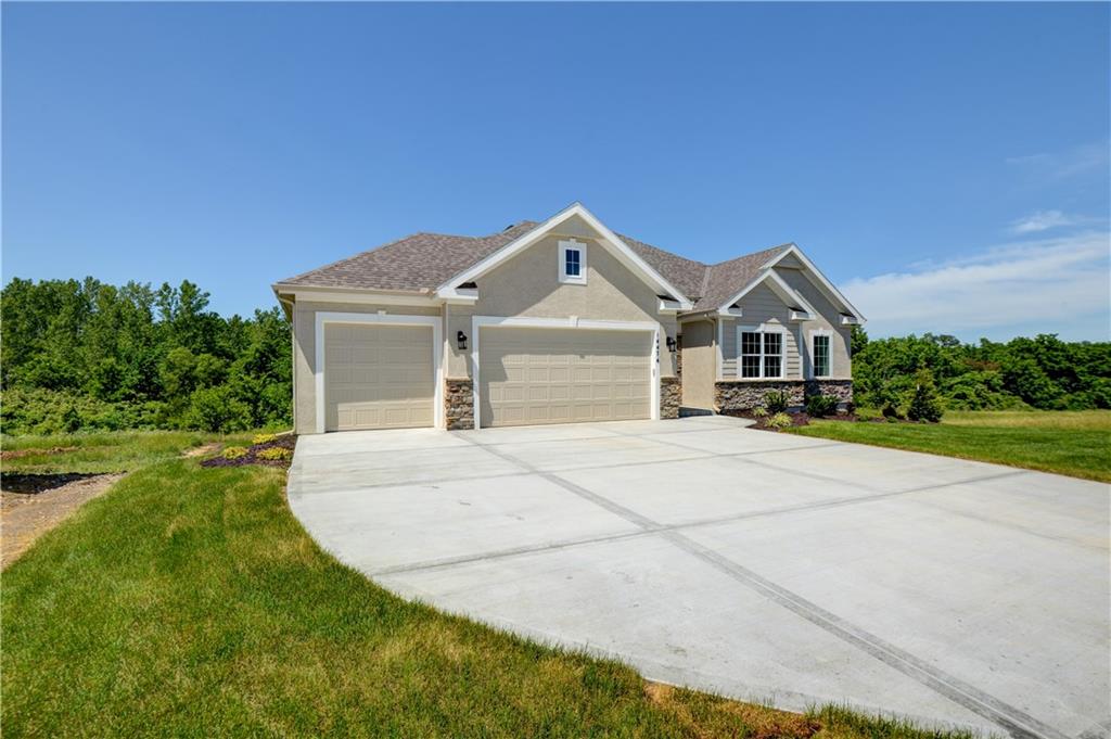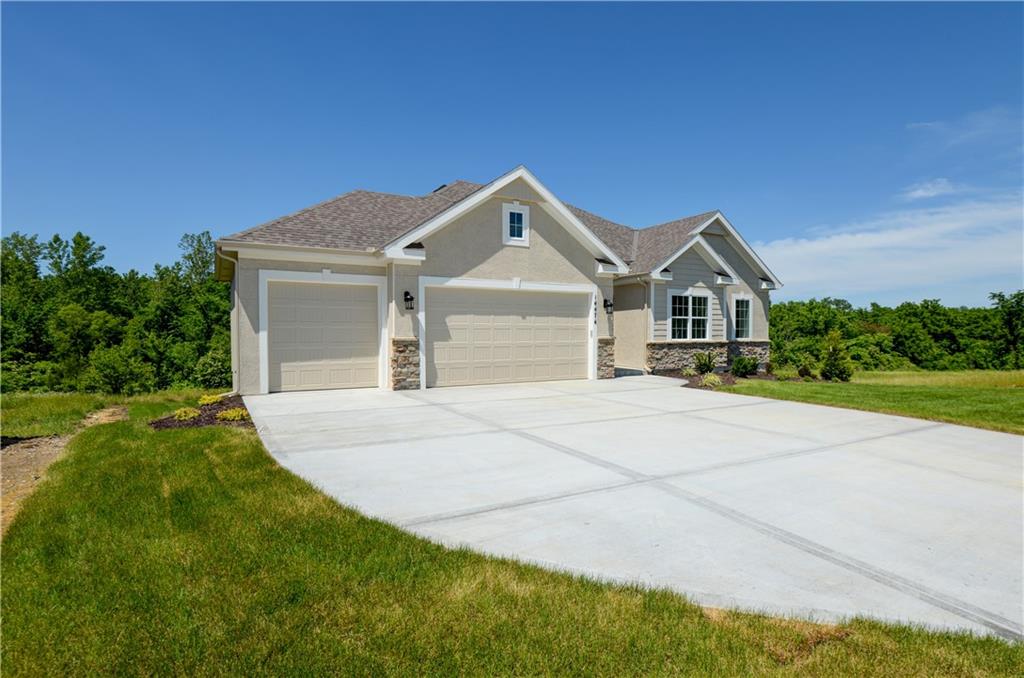 Lot 46 The Hampton IV by New Mark Homes. Estimated to be complete in Feb/March 2026. Reverse plan open Living Room with wood floors and stone fireplace. Kitchen and Breakfast Area has Island, walk in pantry, wood floors, gas cooktop. Main floor Master Bedroom and Bath suite with free standing tub and separate shower. Spacious walk in closet. Main floor 2nd Bedroom, Bath, and Laundry. Lower Level finished Rec Room, 3rd & 4th Bedrooms and full bath. Great storage area. 3 Car Garage. Just 10 minutes to the Legends shopping and entertainment and 30 minutes to the airport, Falcon Lakes is conveniently located on K-7 for easy highway access. Acclaimed Basehor-Linwood Schools. Monthly HOA dues provide lawn maintenance including weed and feed and sprinkler turn on and off as well as snow removal over 2 inches.