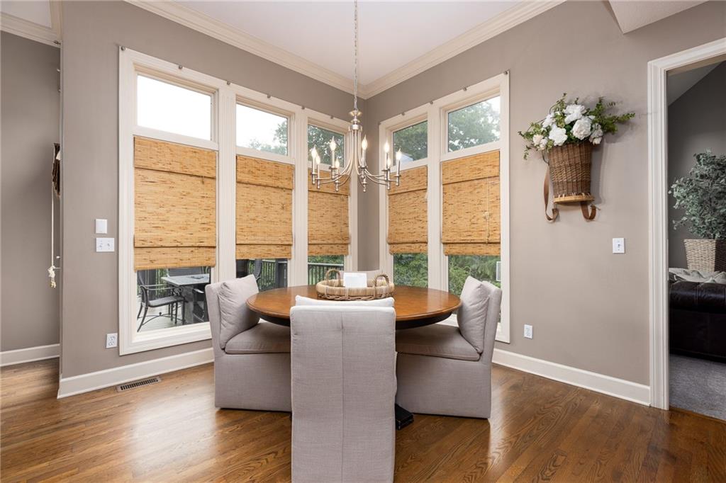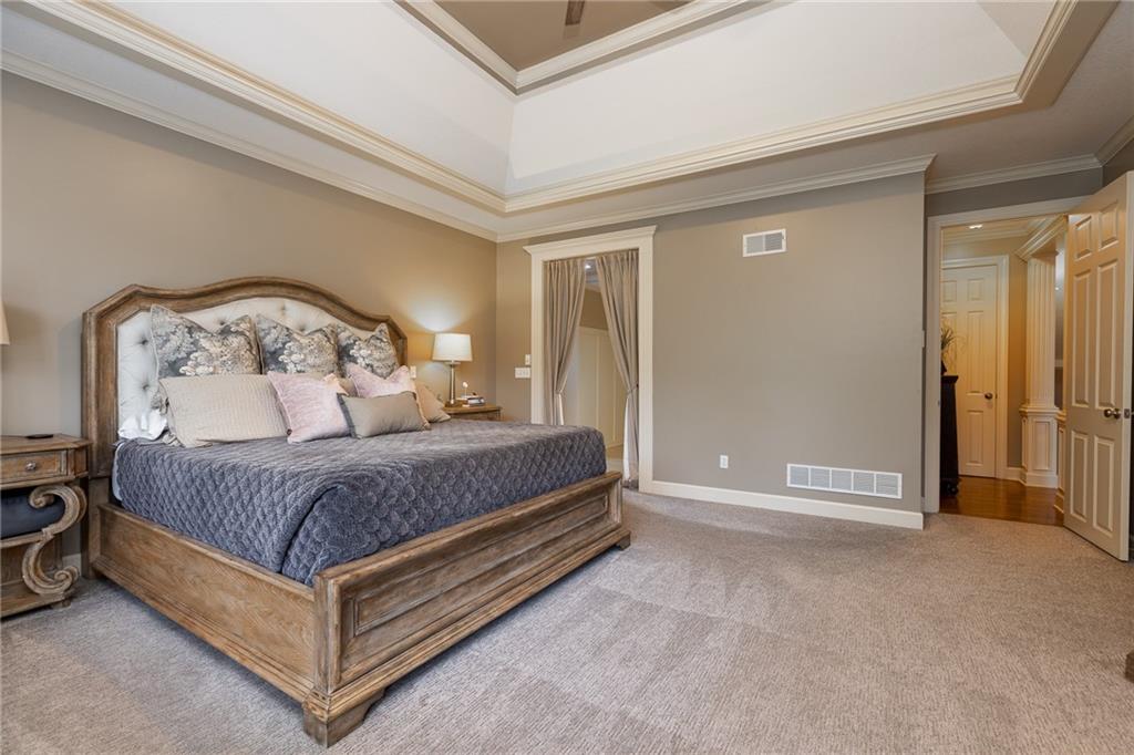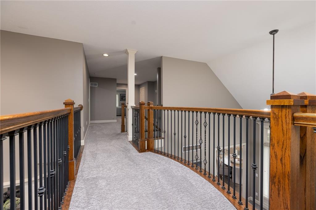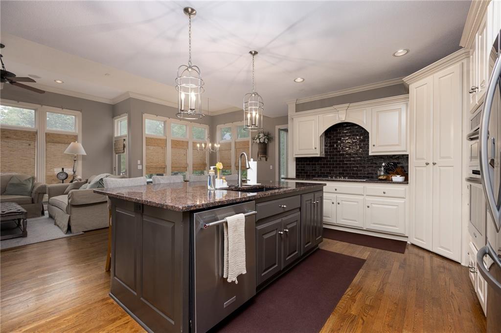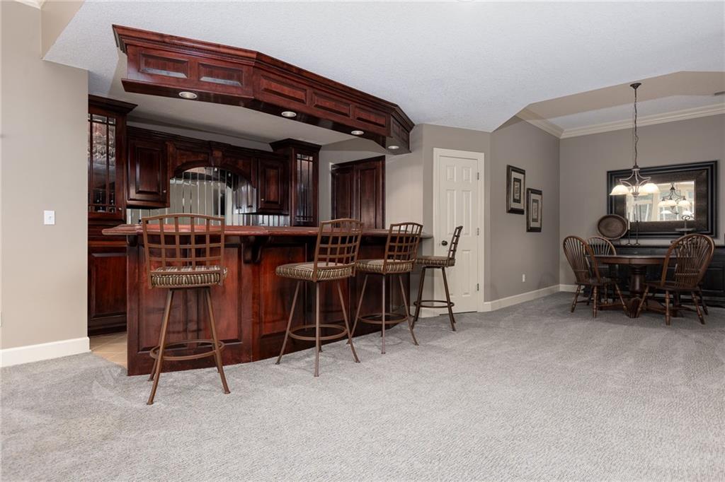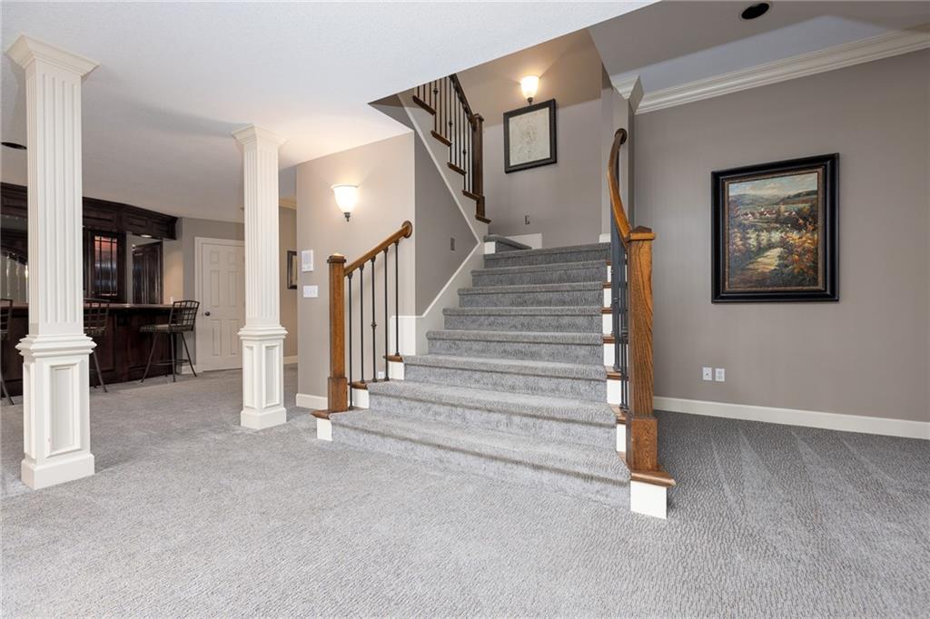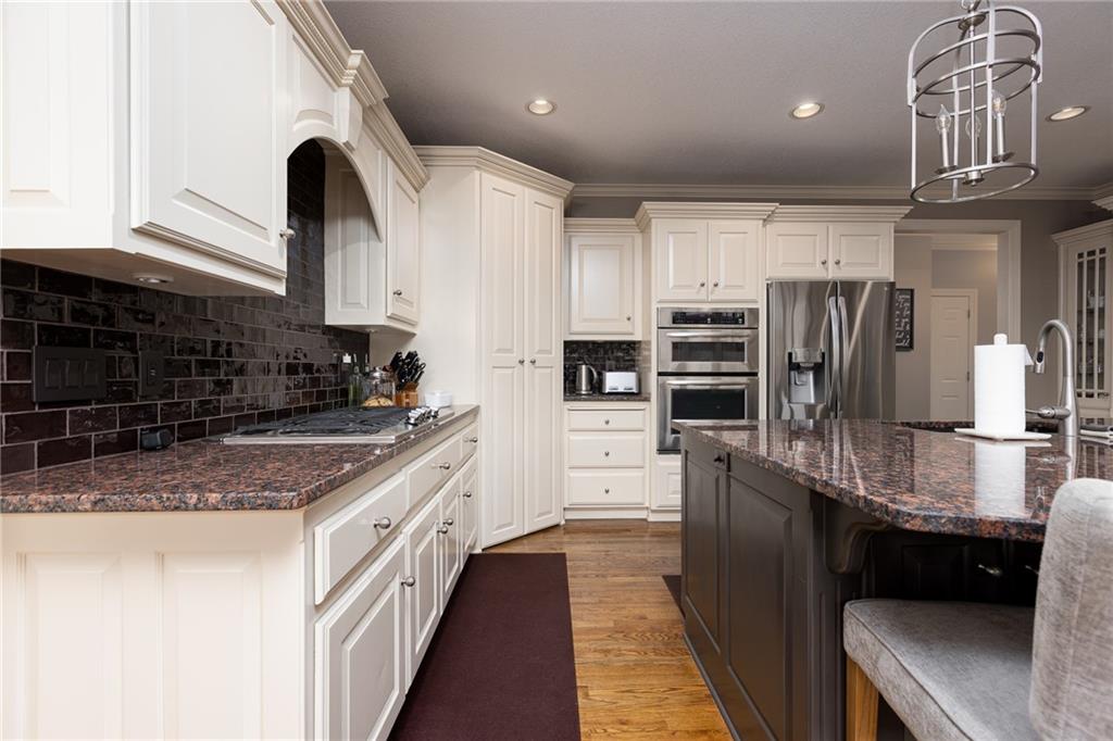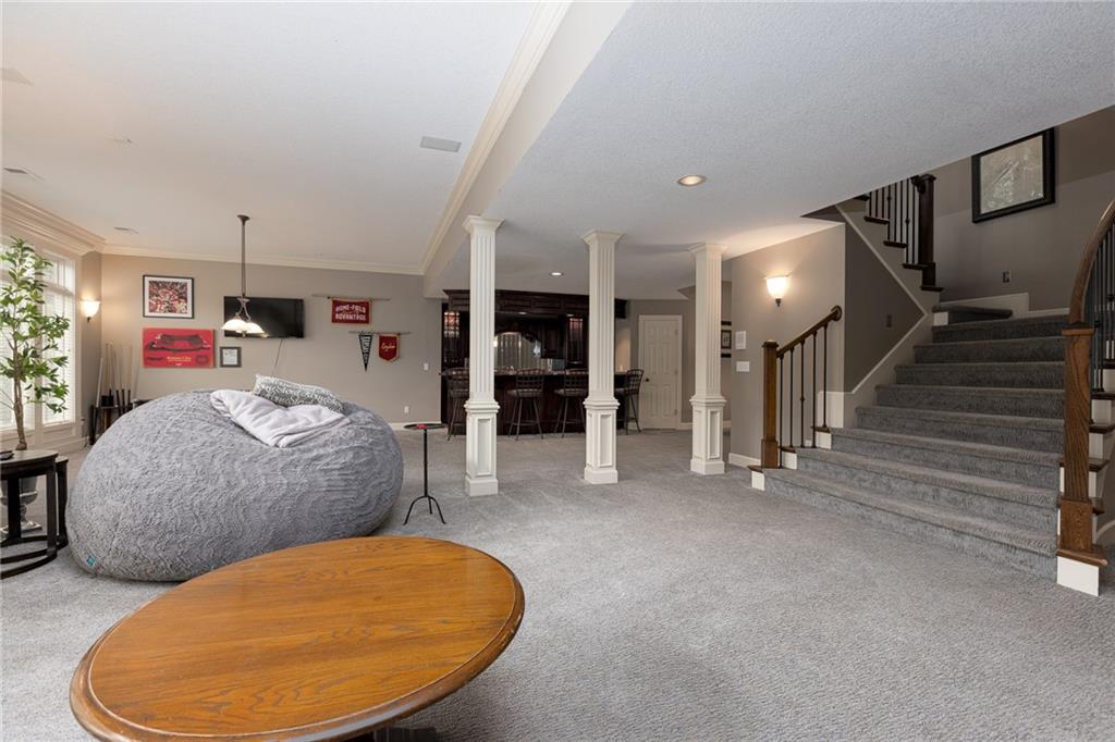 Beautiful 1.5 Story Home- This 4 bedroom, 6 bathroom home with a 3 car garage blends luxury and practicality. The spacious kitchen offers a large island, granite countertops, hardwood floors, and a gas oven & stove, opening to an office nook for convenience. Each bedroom features its own private bath, with the master suite boasting heated bathroom floors with a huge walk-in shower. The hearth room with fireplace is perfect for gathering, while built-ins and custom blinds add style and function. The finished basement includes a full bar, lots of areas to entertain, catch a game, or host a party, plus a SUSPENDED GARAGE for extra storage. Lower level also includes a bonus room that could be converted to a 5th bedroom, workout room, or 2nd office. This home has many unique touches and interesting details that you won't find in other homes, all set on a large, meticulously landscaped private lot. Home's exterior oozes curb appeal and invites you in. Thoughtful touches like dual staircase, a doggie bath in the laundry room, and oversized bedrooms complete this exceptional home. Picture yourself in this elegant home and popular community!