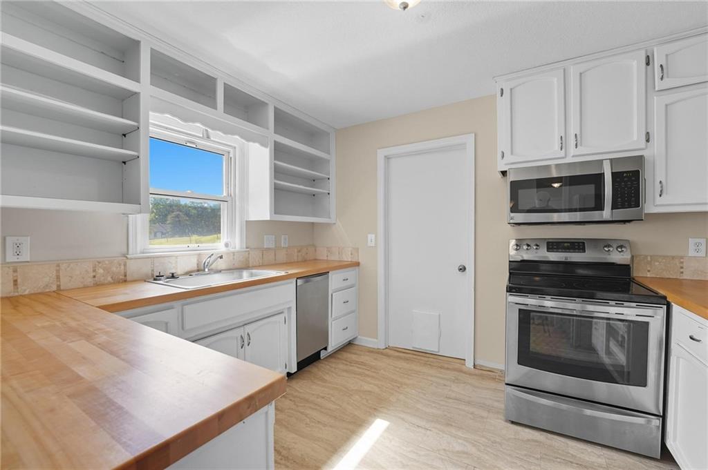 RECENTLY REDUCED! Single-level living just steps from beautiful Oak Grove Park. Park your cars and toys inside the 2-car garage. Inside the home, the kitchen boasts stainless steel appliances, butcher block countertops, and plenty of prep space. Peaceful bedrooms, a full bath and a half, and great living space are just what you need in an ideal location right around the corner from all the conveniences of the North Oak Trafficway corridor.