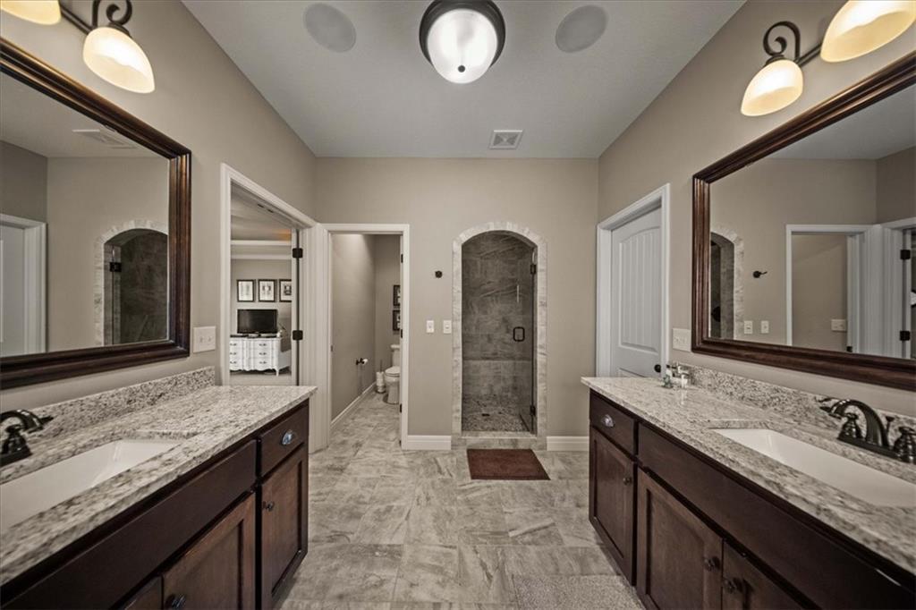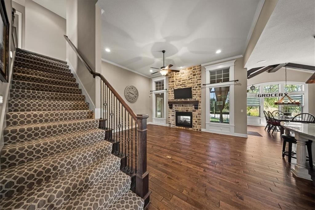 Seller Offering a $5,000 credit to buyer with acceptable offer prior to 12/2!! Welcome to 9158 W 178th Terrace, a stunning Emery Expanded 1.5-story home by James Engle Custom Homes, nestled on a peaceful, level lot with a serene pond view in the desirable Arbor View subdivision. Meticulously maintained and boasting 6 bedrooms, 4.5 baths, and a 3-car garage, this residence is designed for luxurious and comfortable living. Step inside to discover a bright and open layout with soaring ceilings, an inviting flow, and upscale finishes throughout. The gourmet kitchen is the heart of the home, featuring a large center island with granite countertops, stainless steel appliances, and a spacious walk-in pantry with a convenient workstation. The main level offers exceptional convenience with a private primary suite and a flexible fifth bedroom perfect for a home office or guest room. Relax in the spa-like primary bathroom, complete with a freestanding tub, dual-shower head shower, his-and-her vanities, and an expansive closet that seamlessly connects to the laundry room. Enjoy indoor-outdoor living on the covered patio with a cozy fireplace, accessible from both the primary suite and breakfast room. This is the perfect spot for morning coffee or evening entertaining while overlooking the amazing, manicured yard with upgraded landscaping and mature trees. Upstairs, you'll find generously sized bedrooms, an en-suite bathroom, a Jack-and-Jill bath, and a loft for additional living space. The finished lower level expands your options with a large recreation area, a sixth bedroom with egress, a full bath, and an ample amount of storage. Premium details abound, including extensive trim work, a whole-home audio system, upgraded lighting, landscaping and a sprinkler system. All kitchen appliances, plus the washer and dryer, are included for a seamless move-in experience. Don’t miss this exceptional home in a prime Overland Park location in the wonderful subdivision of Arbor View!