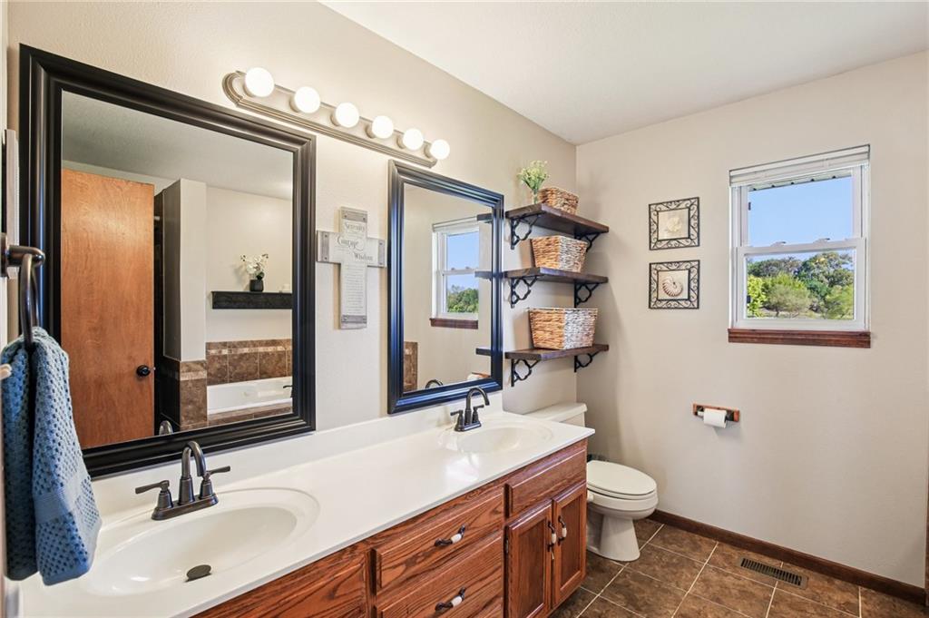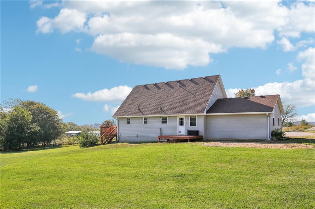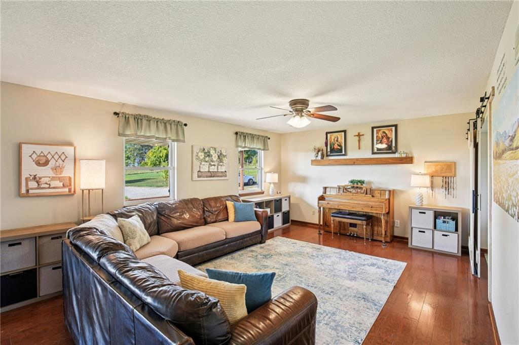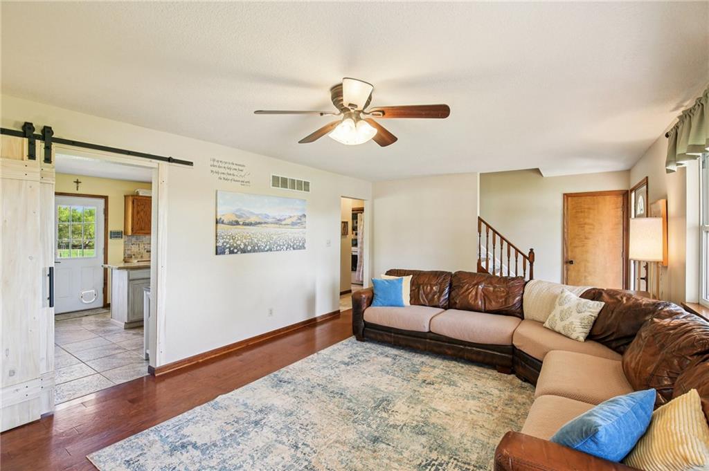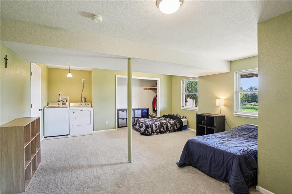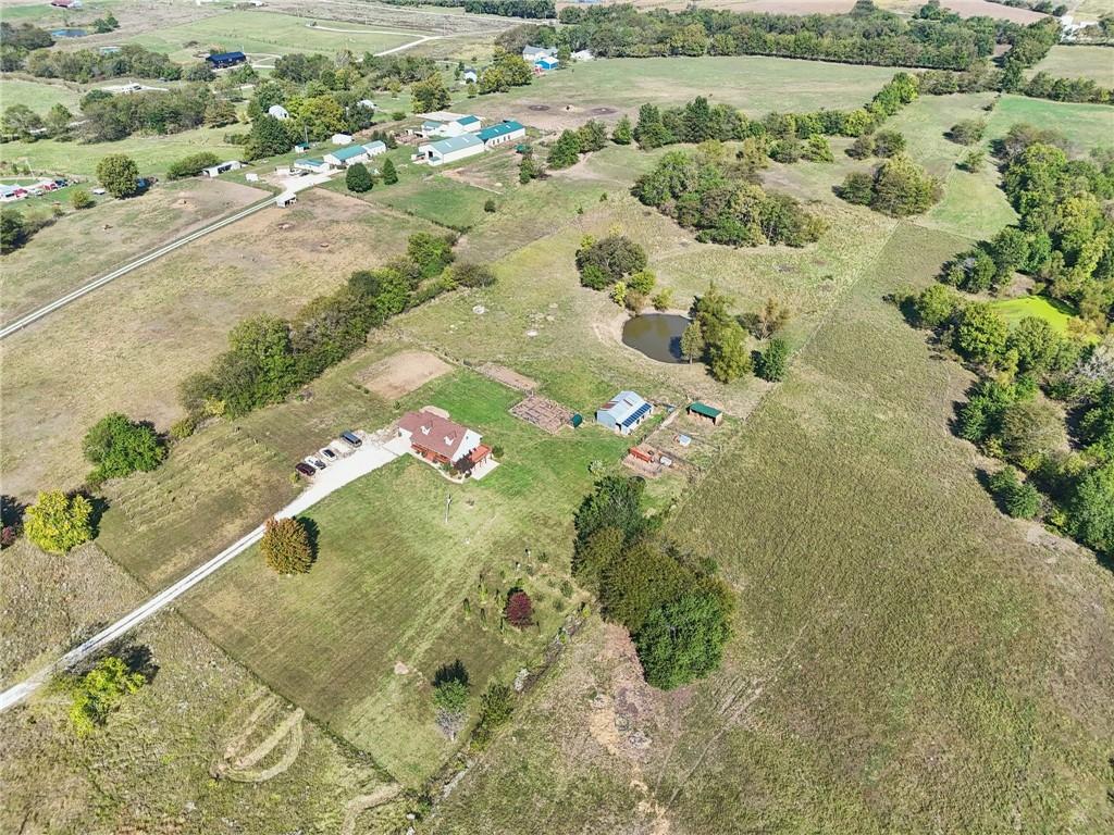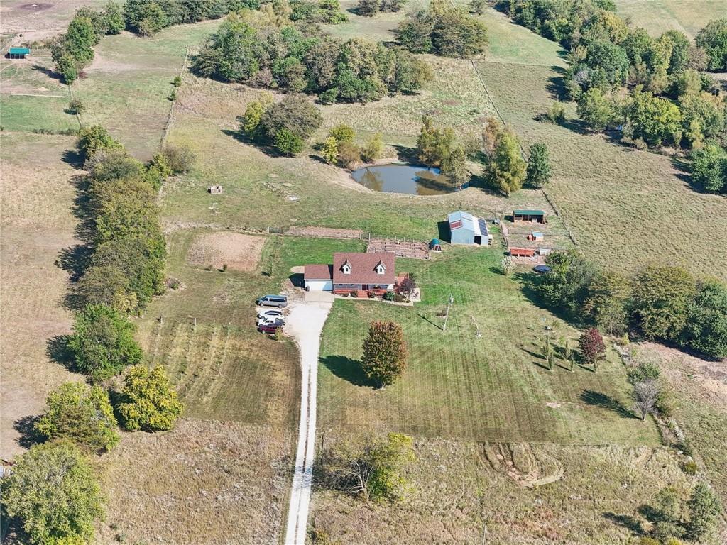 Low cost Geothermal Heating and Cooling! Acreage lifestyle with a fully stocked pond! Property offers opportunity for mini farm lifestyle. Large family room in lower level with full bath and bedroom and washer and dryer. Walkout door to allow for privacy for multi-generational living. Main floor features additional washer and dryer and primary suite. Living room and country kitchen finish out this large space. Upper level has two large bedrooms with a full bath. Lots of storage areas! Quick! Take a Look and Make this House Your New Home! Buyers to verify all measurements and claims.