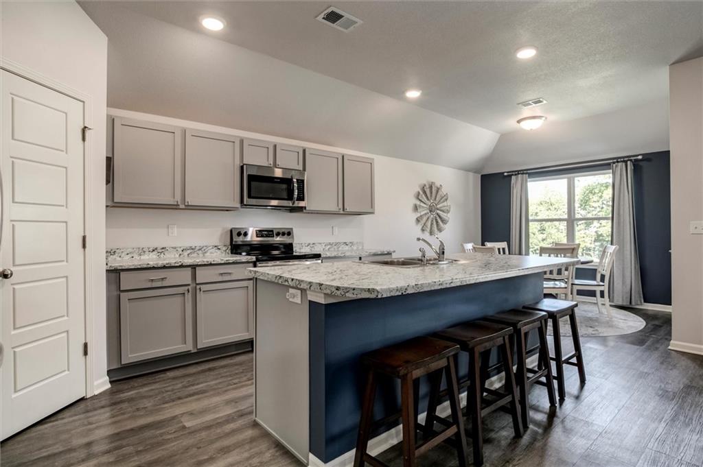 Discover effortless one-level living in this beautifully designed 3-bedroom, 2-bath ranch nestled in a prime Paola location—just minutes from downtown, schools, and shopping. Nearly new and barely lived in, this two-year-old home features an open, light-filled layout that’s both welcoming and functional. The kitchen offers a large island, generous counter space, and a walk-in pantry—ideal for both daily meals and weekend gatherings. The spacious owner’s suite includes a walk-in closet and a bath with room to add a future vanity or tub. Step outside to the covered porch or extended patio and enjoy peaceful views of the green space, often visited by local wildlife.