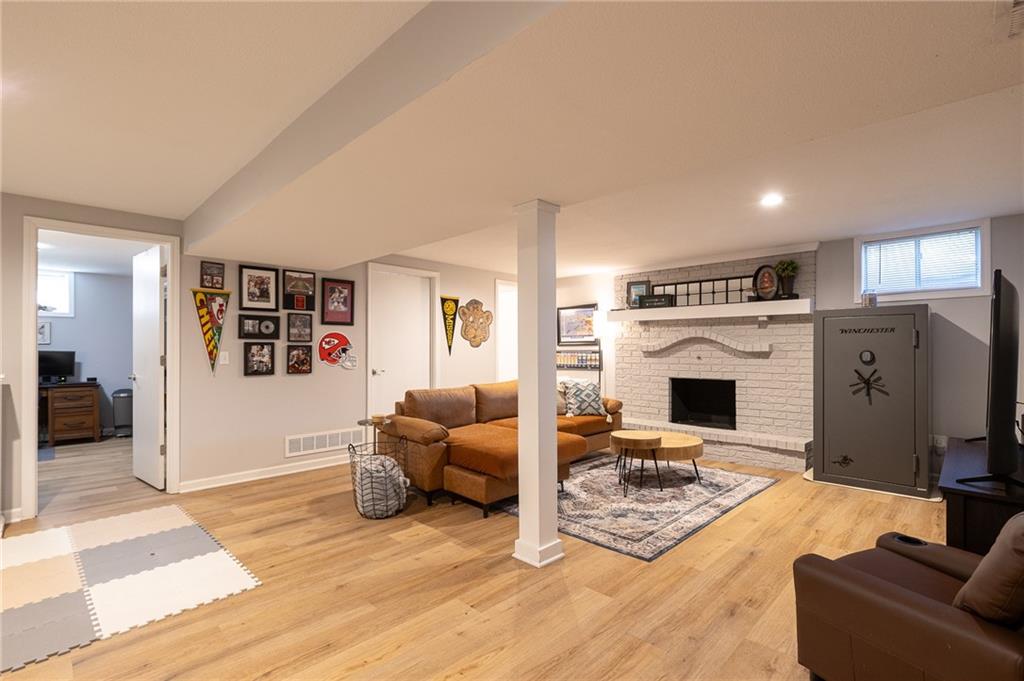 Step inside this beautifully updated raised ranch and fall in love with its open, airy feel! The kitchen is a showstopper with white ceiling height cabinets, a roomy pantry, stainless steel appliances, granite counter tops and a large island ready for family meals or entertaining friends. Cozy up by the fireplace in the family room, complete with fresh carpet. You’ll find 3 comfortable bedrooms and 3 full baths, plus a finished lower level that includes a non-conforming 4th bedroom — perfect for an office, gym, or guest space. The large fenced backyard offers plenty of room to relax or play, all just minutes from highways and shopping.
