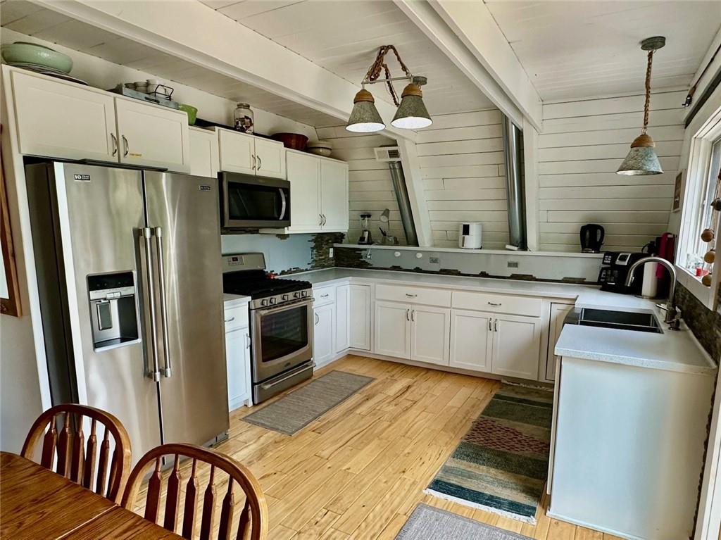 Discover true tranquility at this cozy retreat on little Arrowhead Lake, tucked away just north of Sugar Valley Lake. Revel in exceptional privacy with serene surroundings while still enjoying easy access to the big lake. This move-in ready home features 2 bedrooms, 2 baths, an updated kitchen, two generously sized living areas for relaxation, a spacious deck perfect for unwinding, and a waterproofed patio below offering quiet outdoor enjoyment. The extra-large "Dream" garage/outbuilding with custom painted floor & built-in heater, ensures your vehicles and equipment remain secure while also providing ample storage & workshop capabilities. Within the HOA community, amenities include plenty of opportunities for watersports, fishing, 9-hole golf course, swimming pool, clubhouse, restaurant and campsite contributing to a lifestyle centered around serenity, comfort and fun!