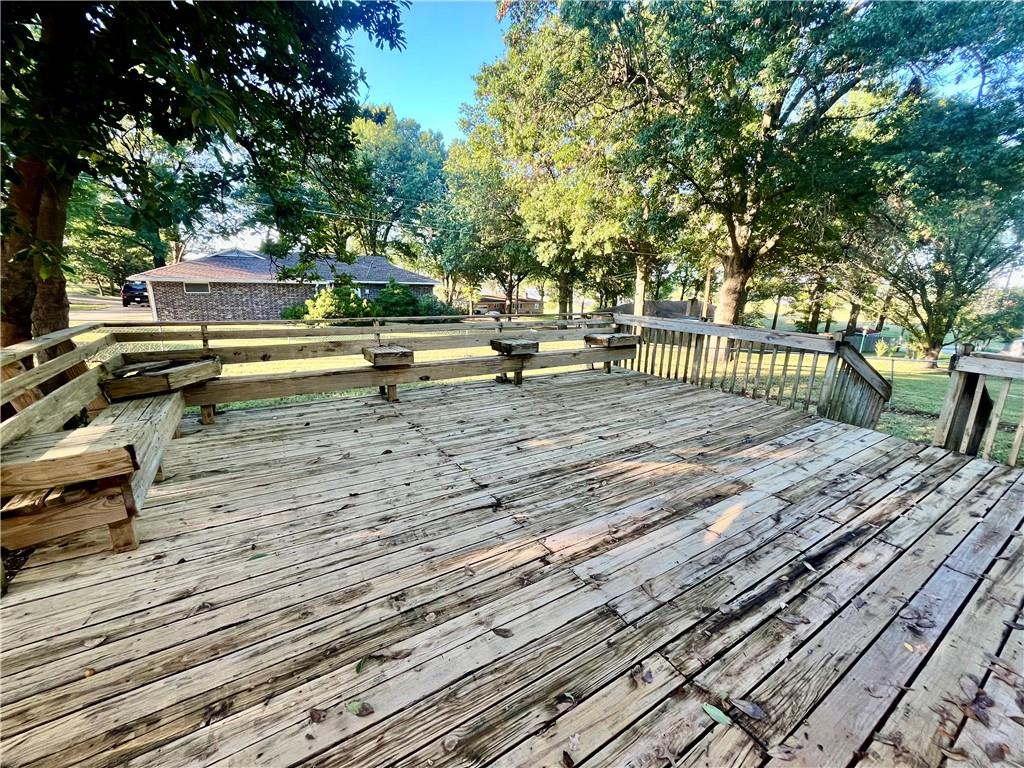 Tucked away on a peaceful and expansive .77-acre lot, this warm and welcoming 3-bedroom, 2.5-bath brick ranch has all the charm of a classic home with room to make it your own. Step inside to find rich wood floors throughout and a large, light-filled living room with a beautiful brick fireplace—the perfect spot to curl up with a blanket on chilly evenings. There's also a cozy great room with even more space to relax, play, or entertain. Walk out the back door in the living room to the large deck overlooking the fenced backyard. Whether you're enjoying a quiet morning coffee or hosting a weekend BBQ, this space feels like home. Downstairs, a full unfinished walk-out basement offers endless possibilities—extra living space, a workshop, a game room, or simply tons of storage. Out front, a charming brick patio area is perfect for evening fires and fall gatherings, and the machine shed is a great bonus for projects, tools, or hobbies. This home has charm and room to grow!