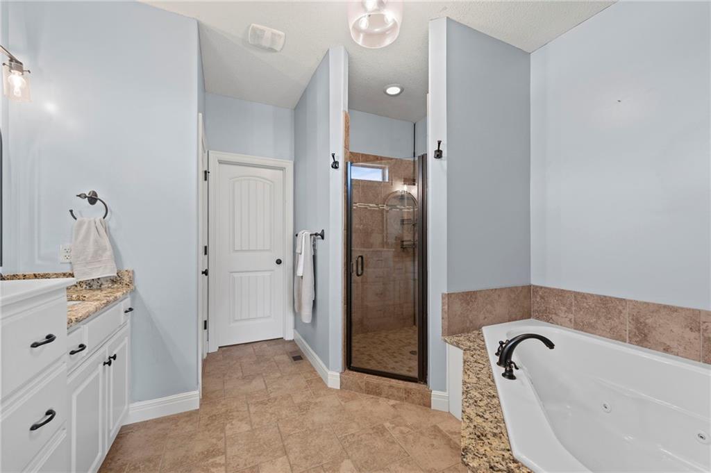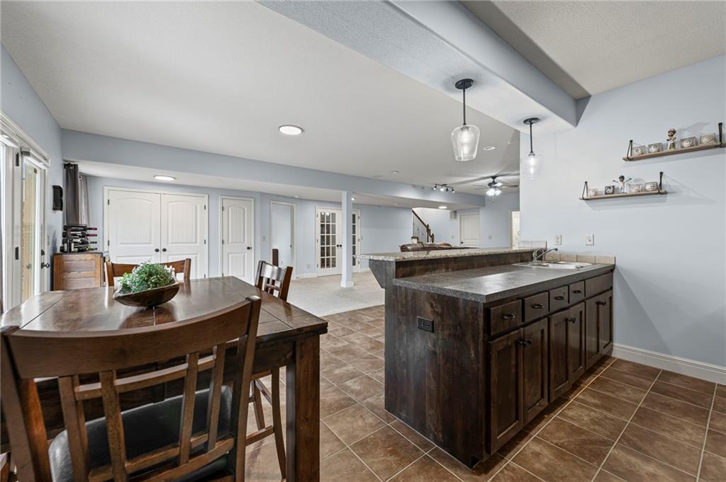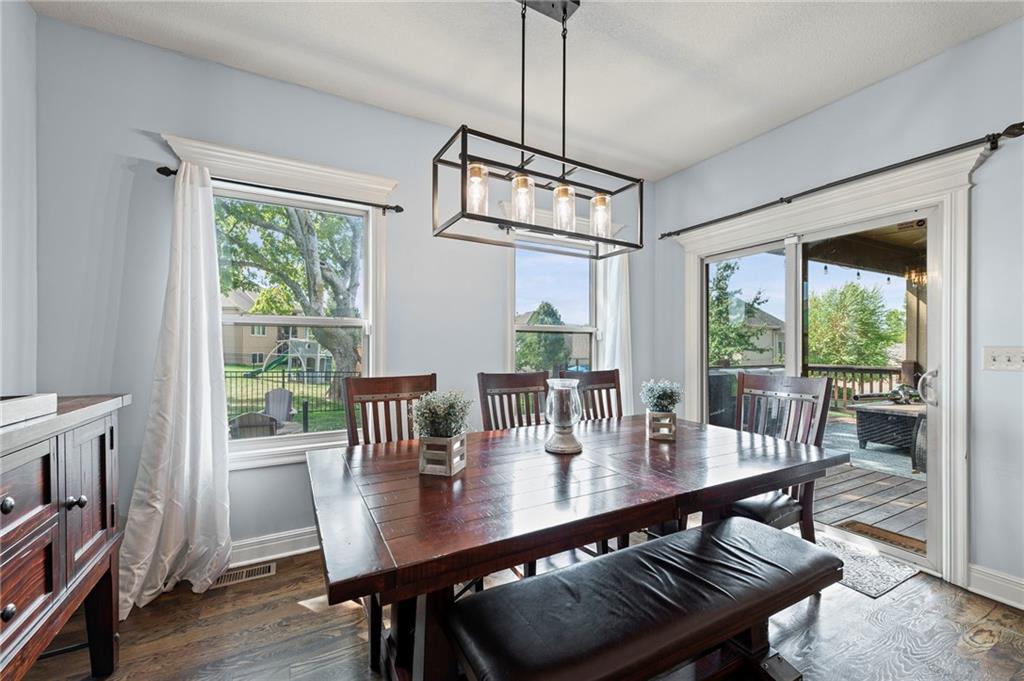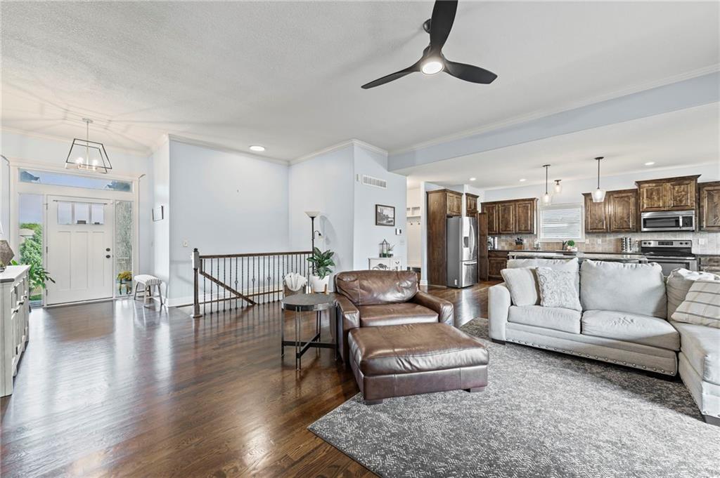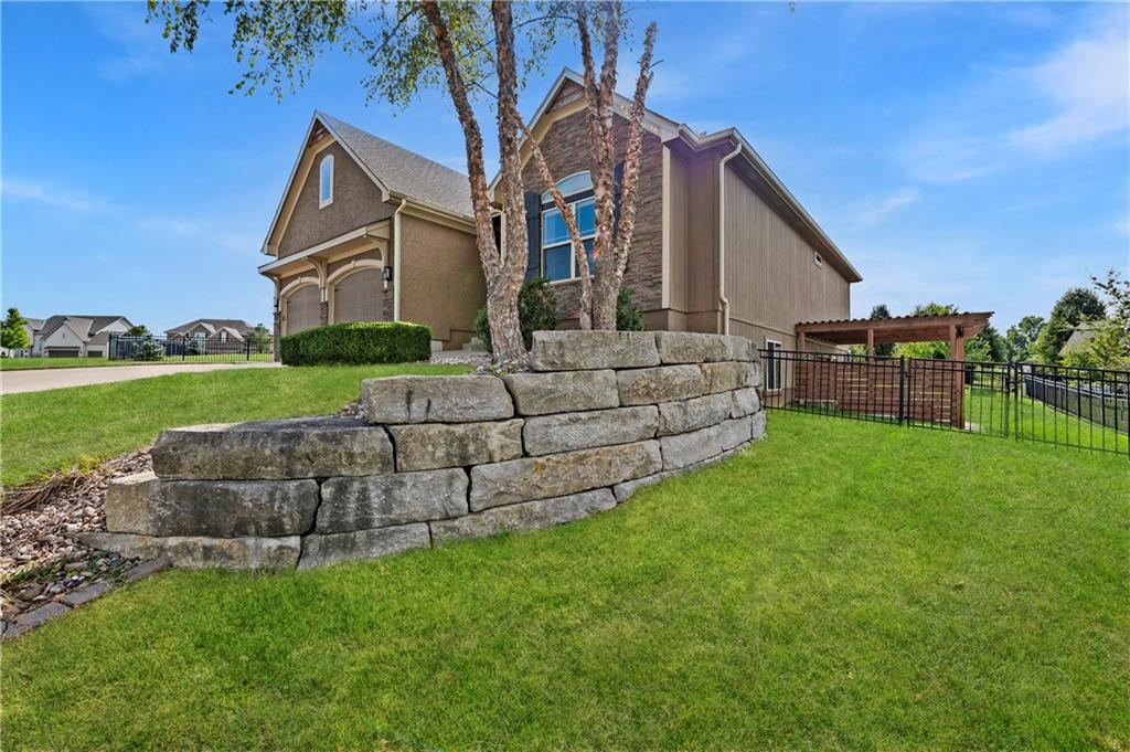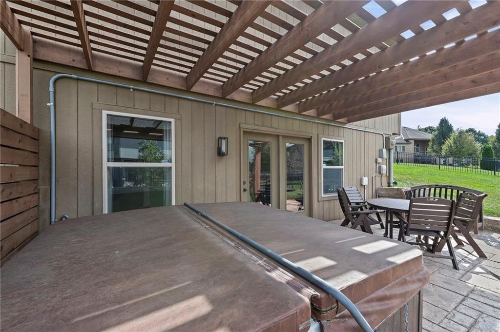 Main-Level Luxury Meets Everyday Comfort in Park Ridge Step inside this stunning reverse 1.5-story home where style and functionality come together. The open-concept living area welcomes you with rich hardwood floors, soaring ceilings, and natural light pouring through oversized windows. The chef’s kitchen features a massive island, a walk-in pantry with grocery door access, and ample space for family gatherings. The primary suite, second bedroom, and laundry are located on the main level for easy, one-level living. At the same time, the finished walk-out basement features a full kitchenette, a second living area, a guest suite, bedroom #4 and extra storage—perfect for guests, teens, or multigenerational living. Relax outdoors under the pergola or in your private hot tub, surrounded by a fully fenced yard. Enjoy the convenience of 3 garage spaces too. Located in Park Ridge subdivision—Lee’s Summit’s premier neighborhood with three pools, a clubhouse, a fitness center, tennis and pickleball courts, and walking trails. Schedule your private showing today—homes like this don’t stay long!