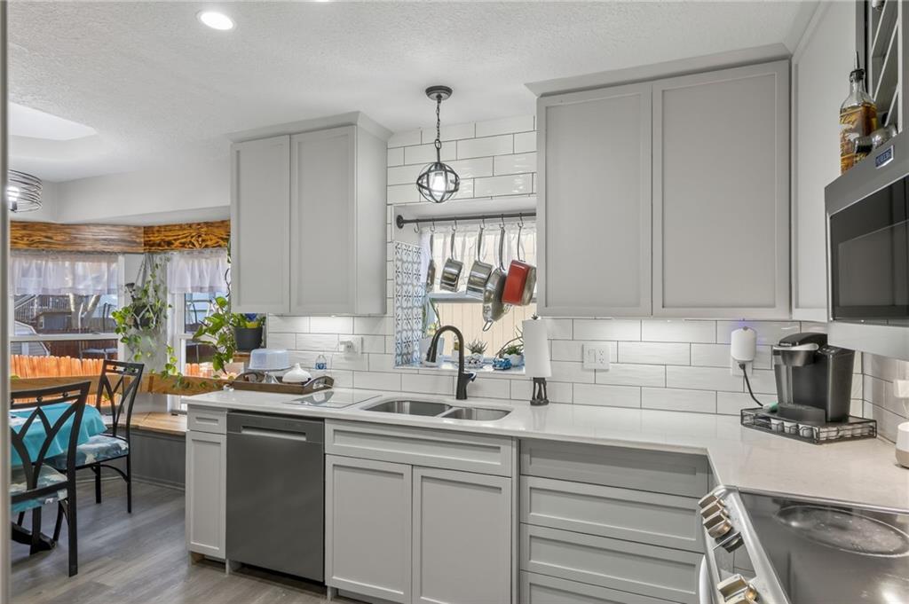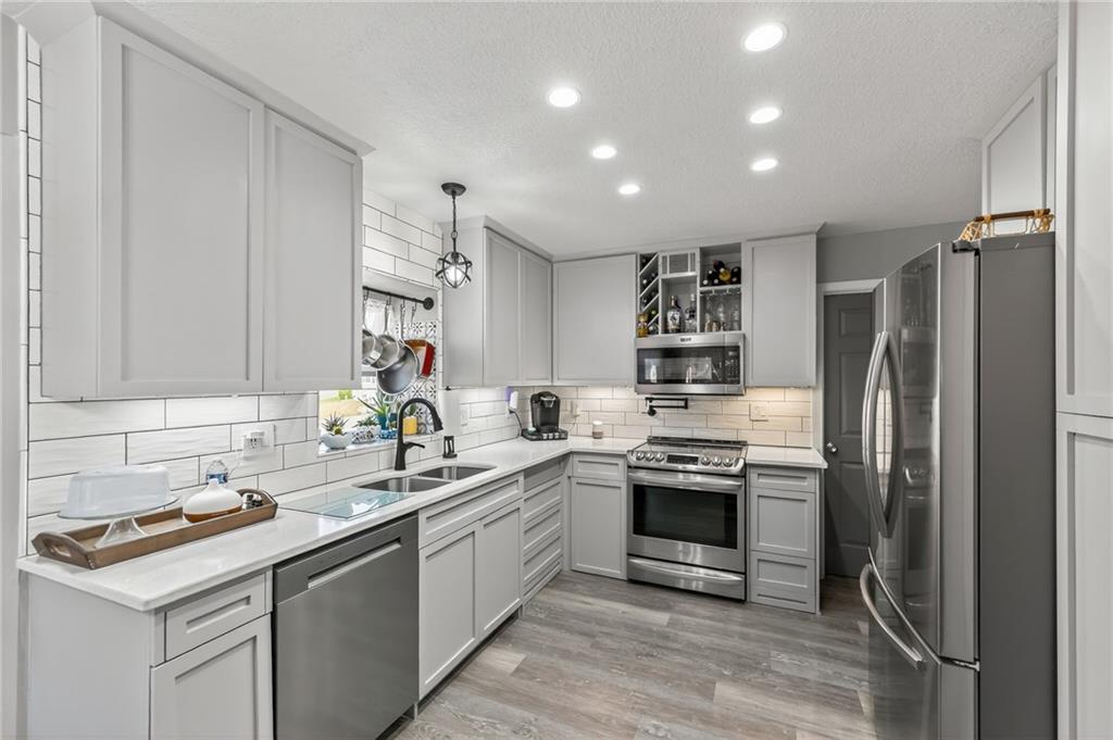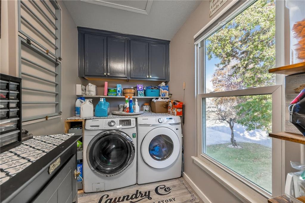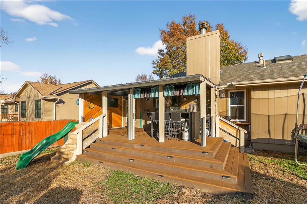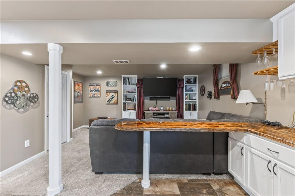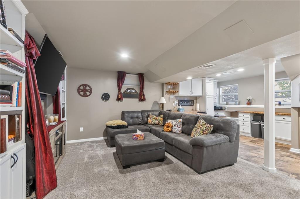 Come see this beautiful, well maintained home in Countryside at Sni A Bar Farms. Close to schools (Grain Valley District). It has a walking trail. As you walk in to this split entry home, you see the beautiful vaulted ceiling in the living room and LVP floors. 3 bedrooms on the main floor with 2 full bathrooms. The kitchen has new custom built cabinets with push to open drawers. The finished basement features a full bathroom, plenty of storage, and entry to the 2 car garage. After a long day, walk out onto the 14x20 covered privacy deck. Relax and enjoy the generous sized fenced yard with fountain/pond or sit back in the hot tub.
