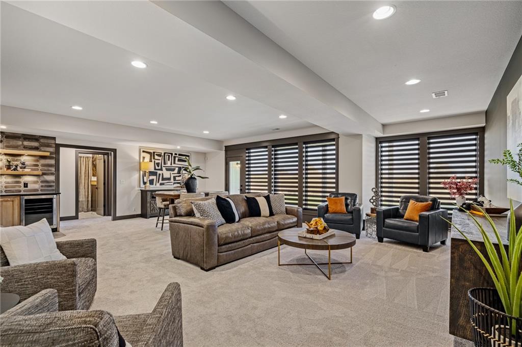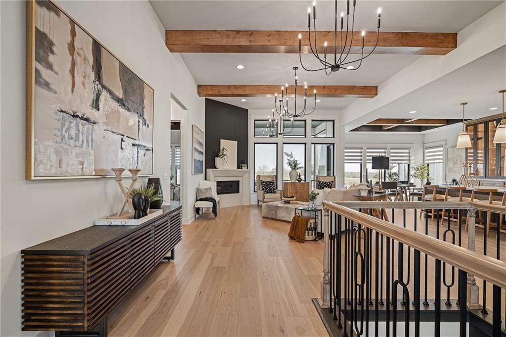 C & M Builders brings their fabulous Windsor Rev. 1.5 sty plan to Johnson Counties newest maintenance provided community of Prairie Canyon. Conveniently located just west of K-7 off of College Blvd., this model home currently not for sale features a wide & open entry that looks into a spectacular Great rm./Kitchen/Dining combo that include a corner FP, large island, huge walk-in pantry & mud room! Luxurious primary suite features a custom walk-in shower & huge walk-in closet. Main floor also includes a 2nd bedroom or Den. Finished walkout LL features a walk up wet bar, very spacious family, entertainment & recreation space, 2 generous bedrooms & a full bath. First floor covered deck w/FP and LL covered patio.