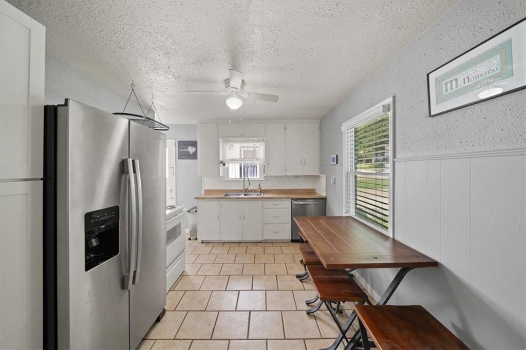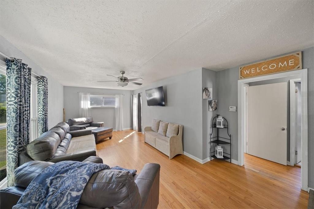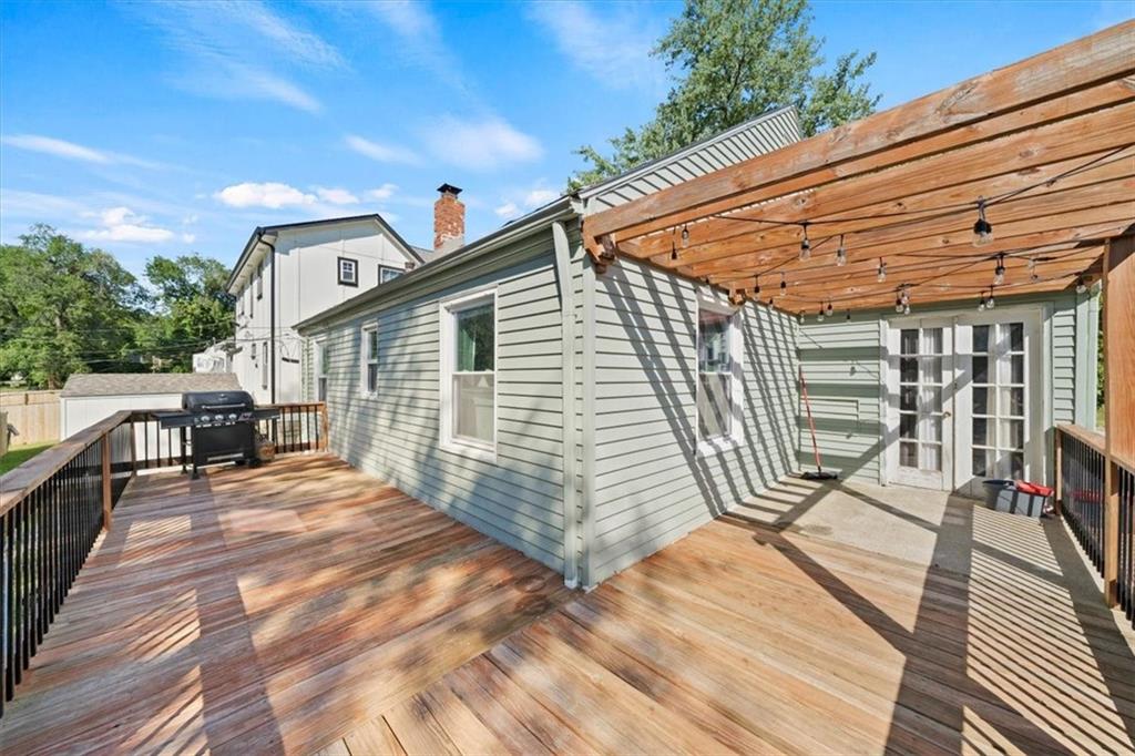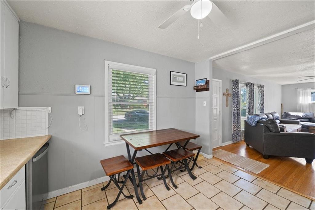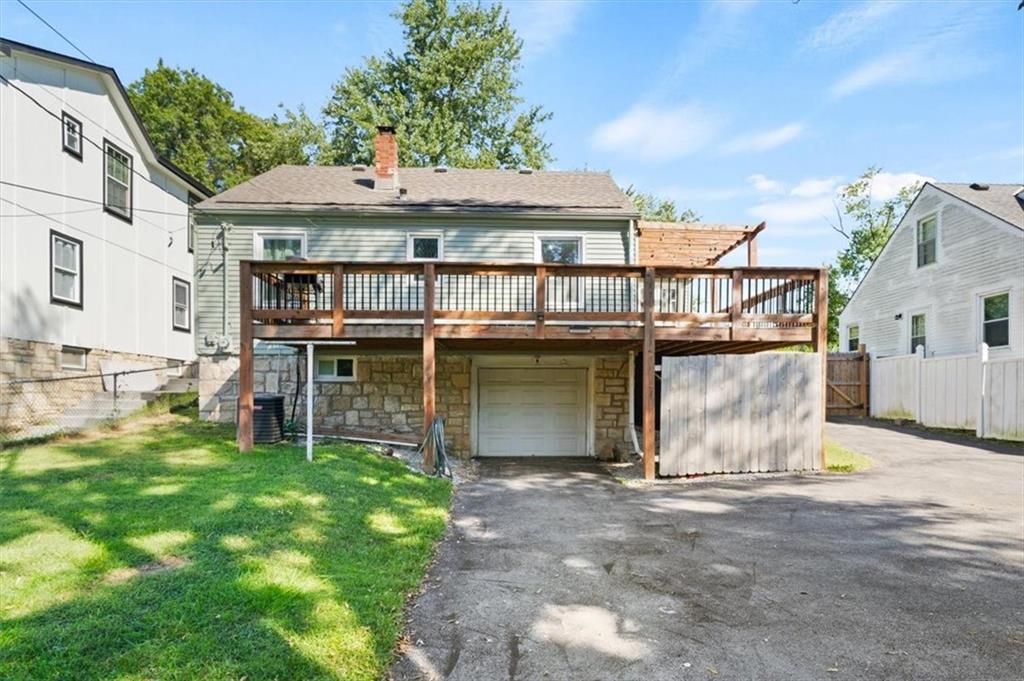 Welcome to this adorable and well-maintained ranch home, full of charm and comfort. Step inside to a bright living room with hardwood floors, a well-appointed kitchen with all appliances included, two bedrooms, and a full bath on the main level. Hardwood flooring extends through the living room, hall, and both bedrooms, while the kitchen and bath feature tile flooring. The second level offers a third bedroom for additional living space. Walk out from the living room to a large patio with pergola and string lighting, perfect for relaxing evenings or entertaining guests. The clean, unfinished basement provides ample storage and includes access to the single-car garage. Exterior highlights include a fully fenced yard with a privacy gate and a resurfaced driveway.