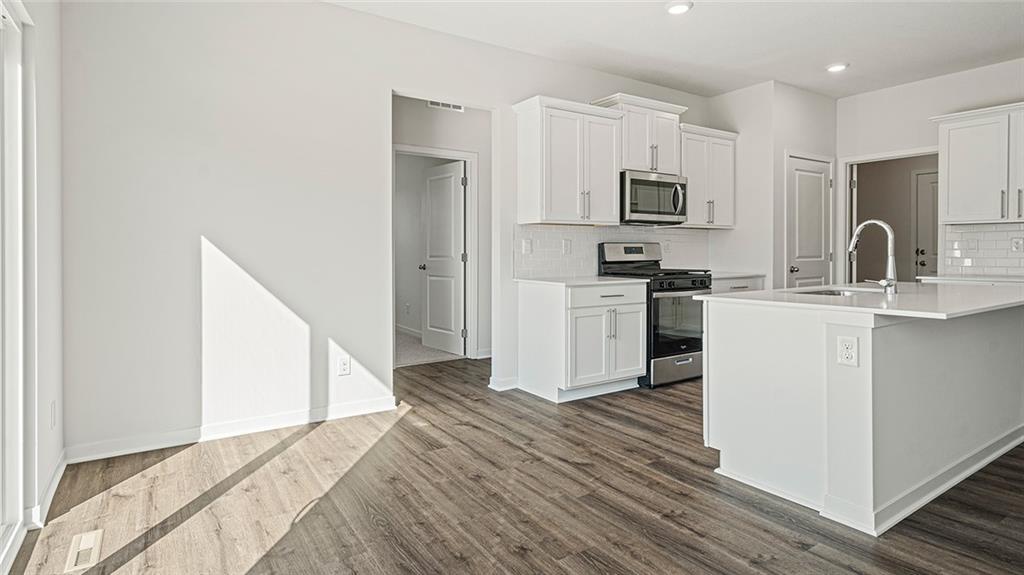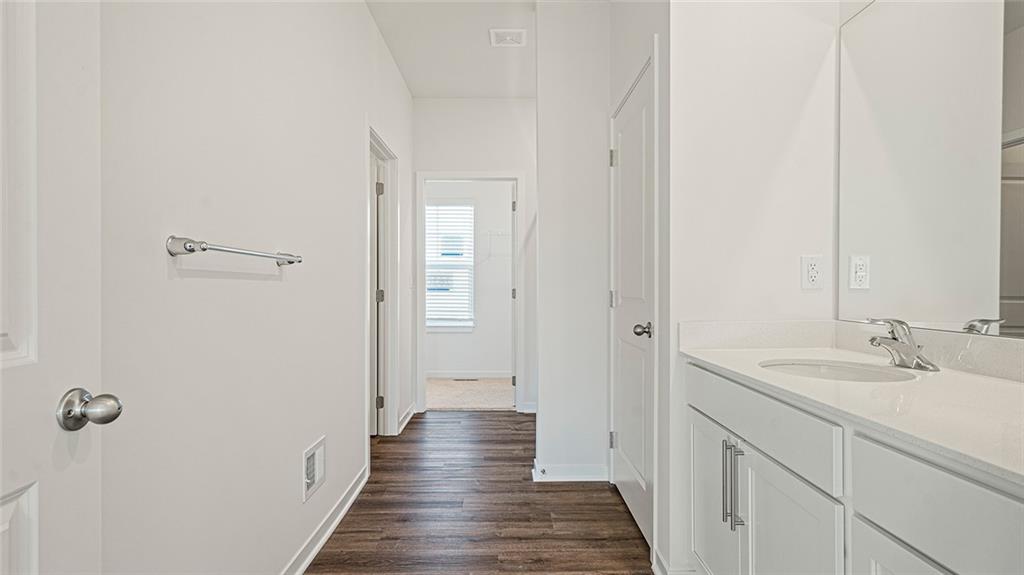 Welcome to Ella's Crossing, where modern design meets timeless elegance in this exceptional home crafted by D.R. Horton, “America’s Builder.” This residence greets you with a three-rail, two-panel insulated front door that enhances both curb appeal and energy efficiency. Step inside to find a beautifully appointed interior with 9-foot ceilings that exude sophistication. The chef’s kitchen is the heart of the home, featuring 36-inch painted maple cabinets, quartz countertops, and state-of-the-art Whirlpool® stainless steel appliances, all designed to make cooking a pleasure. Retreat to the spa-inspired bathrooms, where quartz-topped vanities, Moen® Chrome Faucets, and luxurious showers await. The primary bath offers a 5-foot shower with a framed glass enclosure, ensuring your daily routines are indulgent experiences. This home is designed for the future with advanced Smart Home technology, including a Honeywell® Pro Z-Wave® Thermostat, Amazon Echo, and a connected home panel, allowing you to control and monitor your home from anywhere. Energy efficiency is prioritized with LED lighting throughout, a high-efficiency gas furnace, and insulated low E vinyl windows, ensuring comfort and savings year-round. Additional features such as luxury vinyl plank flooring, a spacious garage with opener(s), and detailed wiring solutions like dual data/TV lines in the main bedroom and family room, enhance both convenience and style. D.R. Horton’s commitment to quality is evident in every aspect of this home, offering you a place where luxury, technology, and comfort come together seamlessly. Don’t miss your chance to own this extraordinary home in Ella's Crossing. Schedule your private tour today and experience the D.R. Horton difference!
