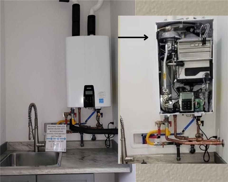 Welcome to this stunning custom modern home where style, comfort, and functionality meet. Set on 0.52 acres of flat, freshly cleared and seeded lawn, this property combines two lots officially rezoned into one expansive parcel. Designed for everyday living or weekend escapes, this 3-bedroom, 2.5-bath retreat blends modern convenience with peaceful lake living. Start or end your day on the expansive 50' x 8' covered patio perfect for enjoying winter lake views and fresh air. Inside, the open floor plan flows seamlessly from the family room to the kitchen, ideal for entertaining. A 42 wood-burning fireplace with floor-to-ceiling ledge stone tile and a custom live-edge mantel adds warmth and rustic charm. A chefs kitchen includes a 36" five-burner propane cooktop, new appliances, an oversized granite island, and a walk-in pantry with ample storage. A stylish half bath sits off the kitchen, while the laundry/mudroom connects to the backyard perfect for unloading lake gear. This space features built-ins, room for side-by-side laundry, and a stainless steel tankless propane water heater with a recirculating system for instant hot water. The private primary suite includes an ensuite bath, custom walk-in closet, and a full-light door to the backyard. Two additional bedrooms are located on the opposite side of the home and share a guest bath with an oversized soaking tub great for relaxing after a day on the lake. The 51' x 27' fully finished garage features four oversized garage doors (2qty: 10' x8' / 1qty: 17'6 x 8') with windows and I-Drive openers, 12' ceilings, and space for boats, golf carts, vehicles, or even a lift. Its pre-wired for a mini-split system for year-round comfort. A full concrete approach provides easy access, and an oversized RV pad with 50/30/110 amp service supports guests or your next adventure. This one has it all! *Seller Disclosure *Transferable Warranties *Plot Map *Recreational Vehicles Private Showing 913-735-3123 / 760-550-1231