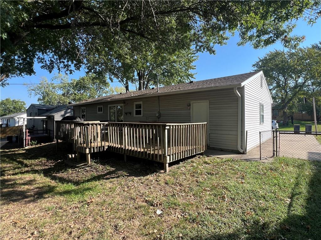 Charming True Ranch-One Level Living This well maintained true ranch home in the Gracemor neighborhood offers comfortable one level living with 3 bedrooms and 1.5 baths. Lots of updating, newer vinyl windows, main level bathroom updated, lots of wood floors and white kitchen cabinets. The finished basement has new carpet, rec room plus versatile area perfect for an office/den, studio, exercise room etc. Step outside to the large deck area overlooking the large fenced yard ideal for entertaining, gardening or play. Conveniently located with easy access to I-435 and I-35 highways, you'll enjoy a quick commute to downtown, the airport, shopping, dining and top medical facilities. Don't miss this opportunity to own a ranch home with space inside and out in a prime location.