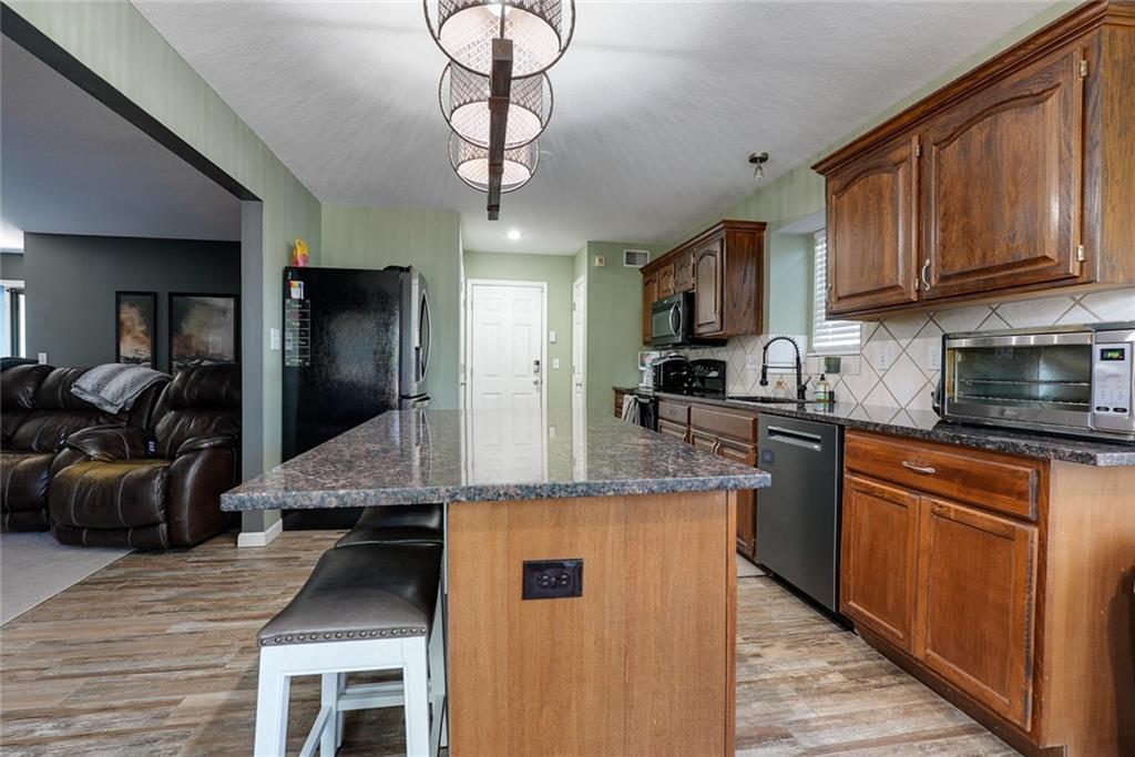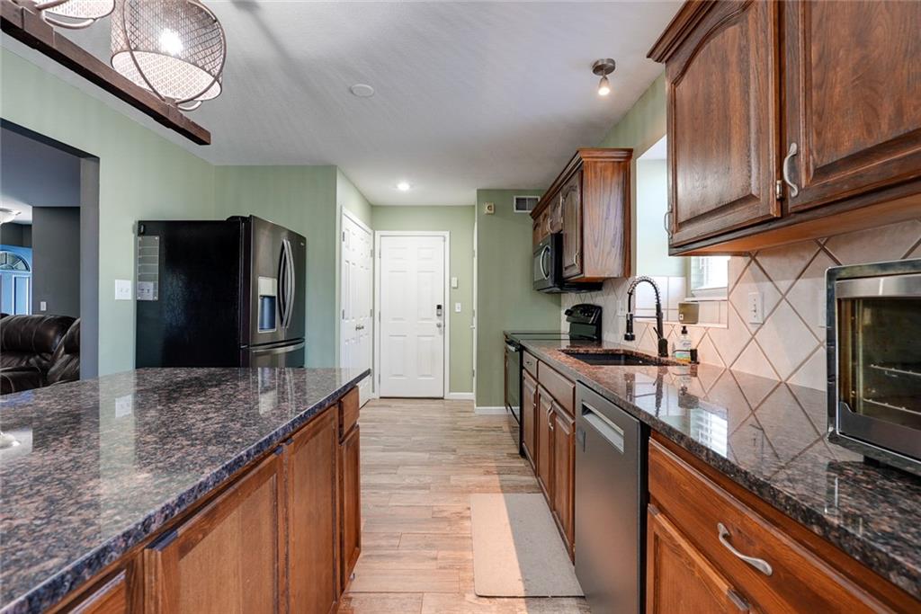 MOTIVATED Sellers offering this Beautifully Updated 5-Bedroom, 3- Bathroom Home with Country road vibe and Modern Comforts. Tucked away on quiet country back roads yet just minutes from town, this fully updated 5-bedroom, 3-bathroom home offers the perfect blend of seclusion and convenience. The open floor plan connects a spacious living room, large dining area, and stunning kitchen with a Large Island to accent it all.—ideal for entertaining or family gatherings. The main floor features three well sized bedrooms including a beautiful primary suite with raised ceilings, updated and modern master bathroom with sizeable His/Hers closet space and a Double vanity.All while the finished walk-out lower level offers two additional spacious bedrooms, a second living room area for any sized gathering to enjoy the ample space including your own personal theatre area,a third full bathroom, plus abundant storage space. Step outside to a large back deck overlooking the fully fenced yard surrounded by a privacy fence. The open lot next door enhances the peaceful setting, giving you extra breathing room. Located in a desirable neighborhood with No HOA and part of the highly sought-after Grain Valley School District, this home combines rural charm with modern convenience.