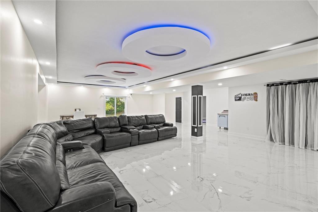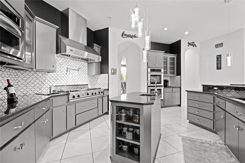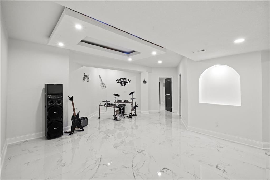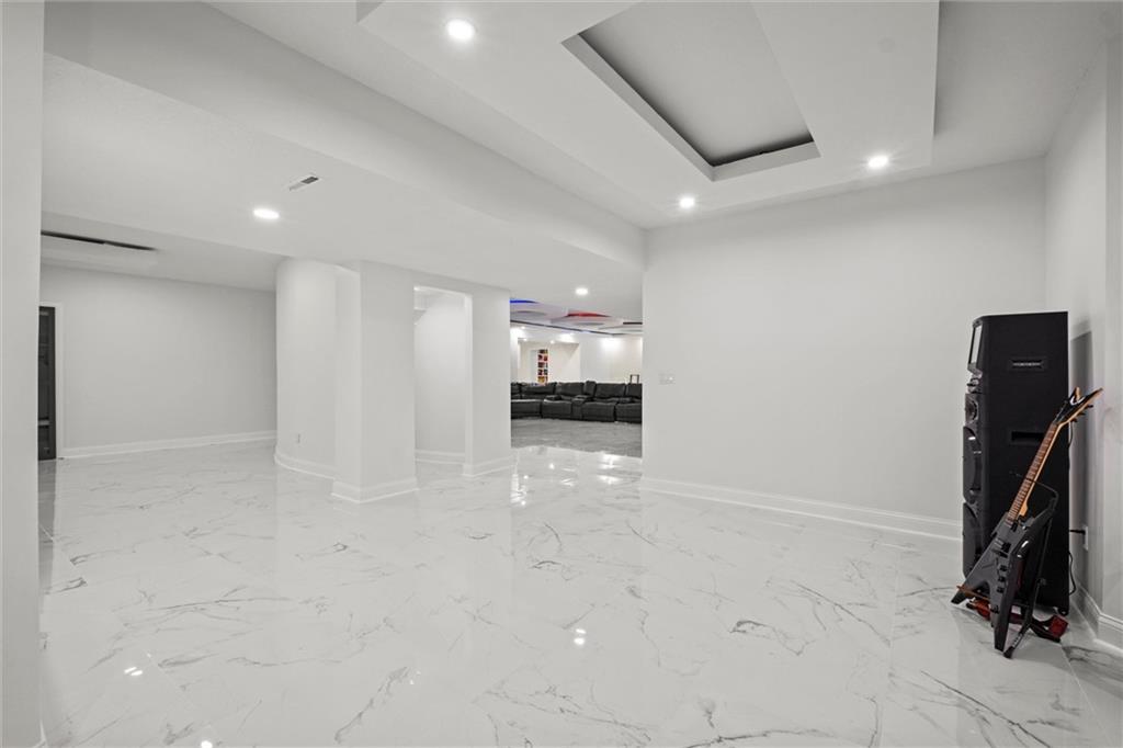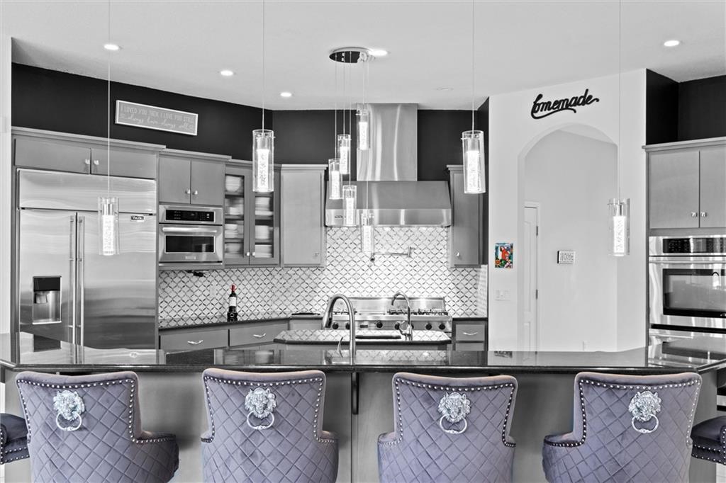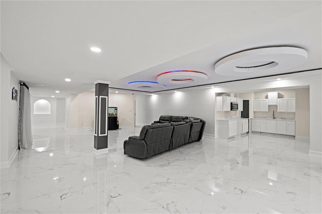 Stunning luxury estate on 4 acres in the coveted Wildflower Subdivision! Centrally located in highly desired Lee's Summit, featuring top-rated schools, and bordering the communities Legacy Park Complex where you will find 692-acres with softball, baseball, football and soccer complexes. The park also includes 3 shelters, Lovell Community Center, a 22-acre lake with fishing dock, disc golf course, amphitheater, playground, and a 4.7-mile trail. -- This home offers 5 bedrooms plus a 6th & 7th nonconforming in basement, a dedicated office on main level, 4 full and 3 half baths, and oversized 4-car garages. Soaring 20' entry ceiling & 22' formal living ceilings with floor-to-ceiling windows and a see-through fireplace into the chef's kitchen, which features a top of the line Viking Refrigerator, 6-burner gas stove, Dual Islands with Prep Sink, 2 dishwashers, Pot Filler, Granite Counters, and a large walk-in pantry with built-in counter space. The oversized primary suite includes direct access to the pool, a see-through fireplace into the spa-like bath with whirlpool tub, dual vanities, dual-head shower, and a huge 3-tier walk-in closet with private laundry. Upstairs features a large loft, walk-in closets in every room, and a second laundry. The newly finished walkout basement was just finished in 2025 w/ upgraded tile throughout and offers true multigenerational living potential with its own 4th car garage, full kitchen with New SS appliances and walk-in pantry, 3rd laundry area, 3 living room/recreational areas, theatre room, 3 bedrooms (2 non-confirming), 3 bathrooms, and a walkout to the side yard. The backyard is an entertainer's dream w/ a nearly new heated vinyl pool, new stamped concrete patio, & glass fencing, plus tons of open backyard space for recreational sports. Additional features include a Reolink hardwired security system w/ 16 cameras, oversized deep garage bays, a beautiful circle driveway, & abundant storage. Upgraded lighting and plumbing throughout.